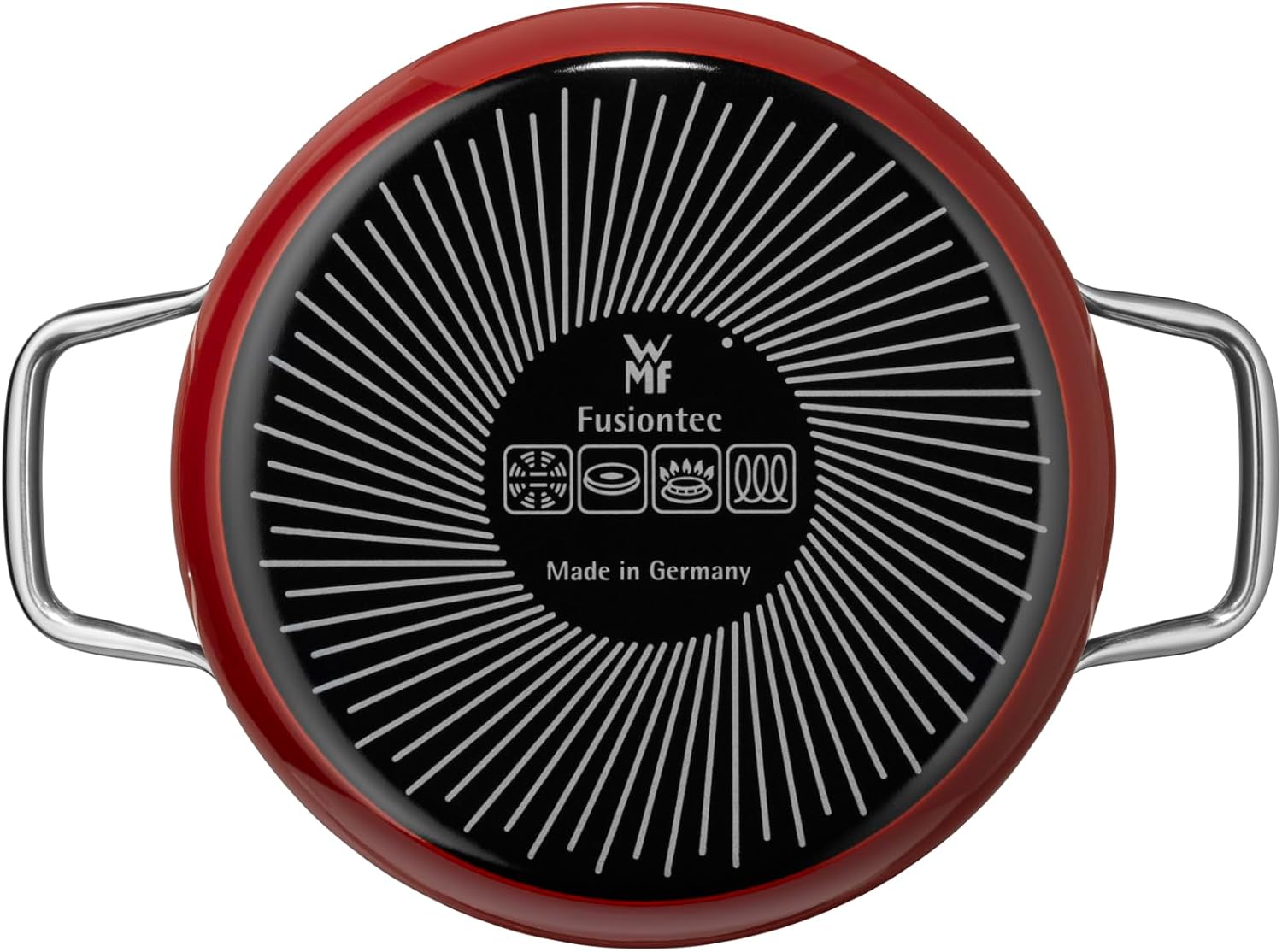 WMF Fusiontec Compact Topfset Induktion 3-teilig, Kochtopf Set, Dämpfer, Glasdeckel, Cromargan Edelstahl poliert, Töpfe Set stapelbar, rot | قیمت یورویی 264.14€