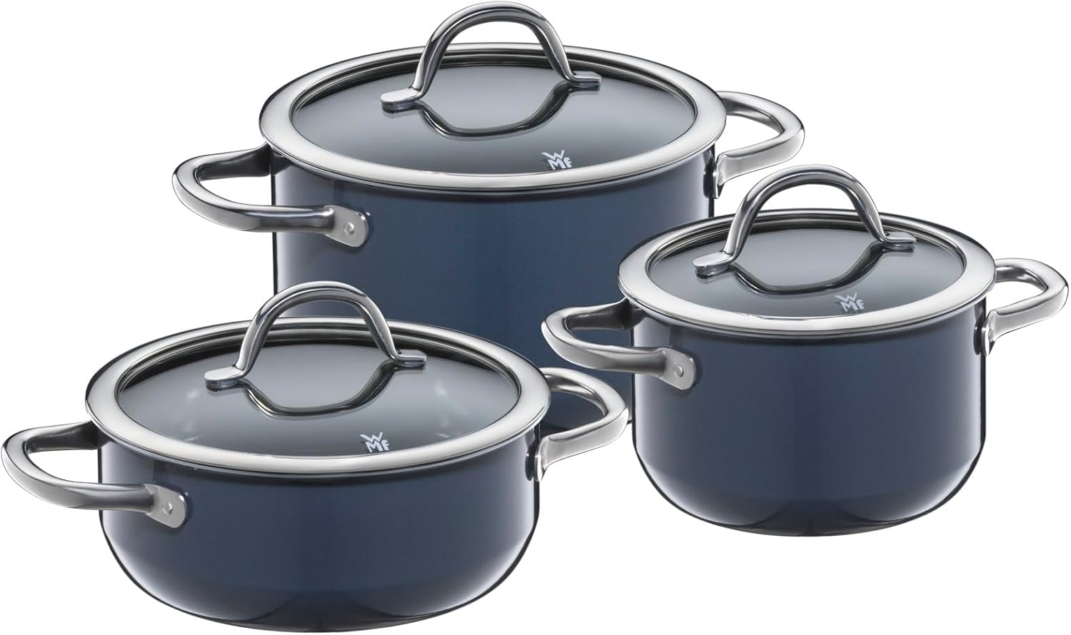 WMF Fusiontec Inspire Topfset Induktion 3-teilig, Kochtopf Set mit Glasdeckel, Induktions Töpfe Set, High-Tech Keramik, kratzfest, unbeschichtet, ohne Skalierung, dunkelblau, Made in Germany | قیمت یورویی 283.97€