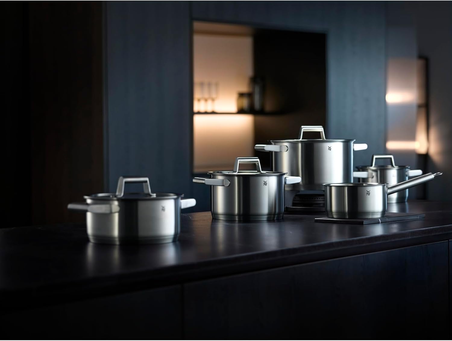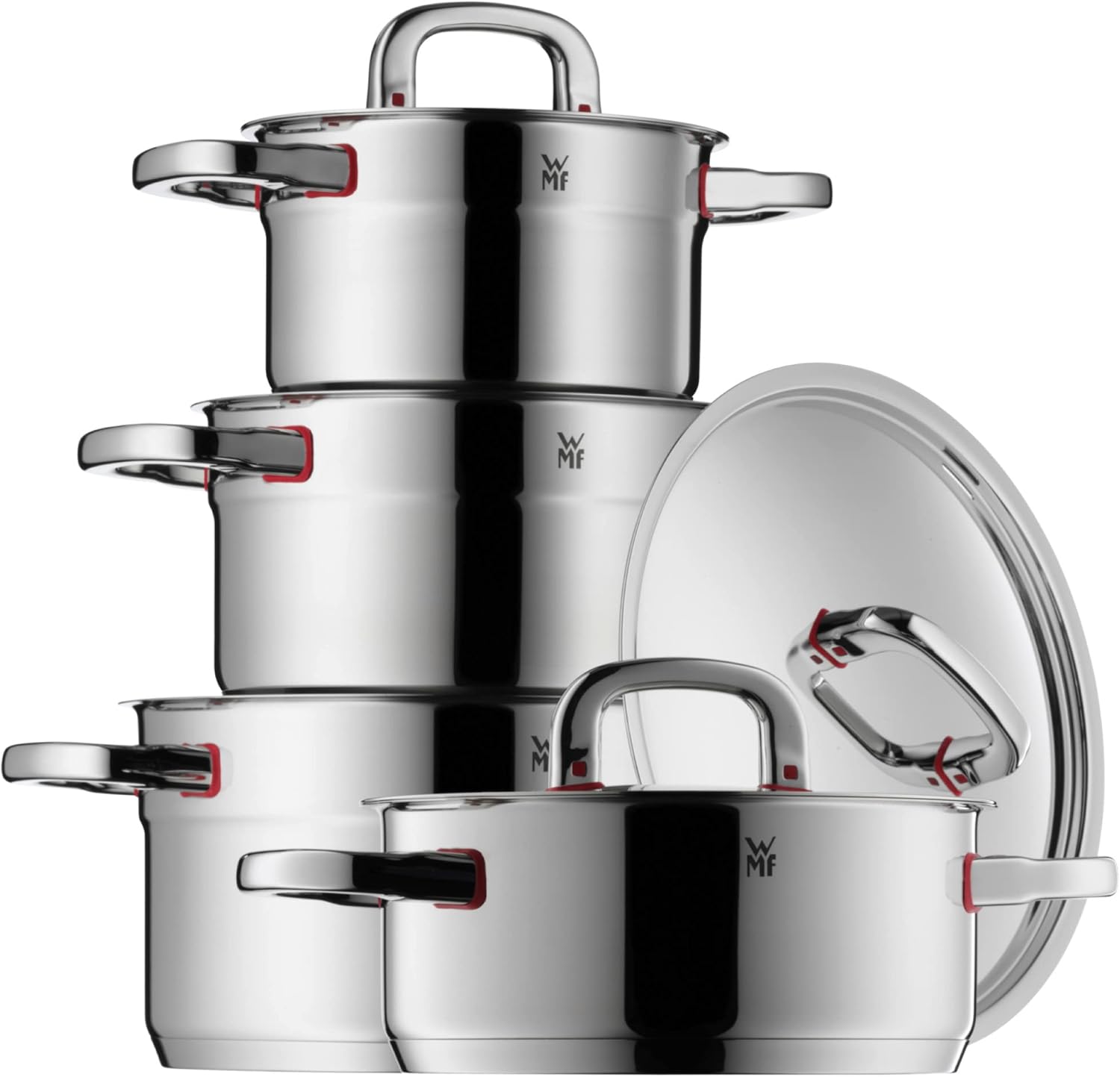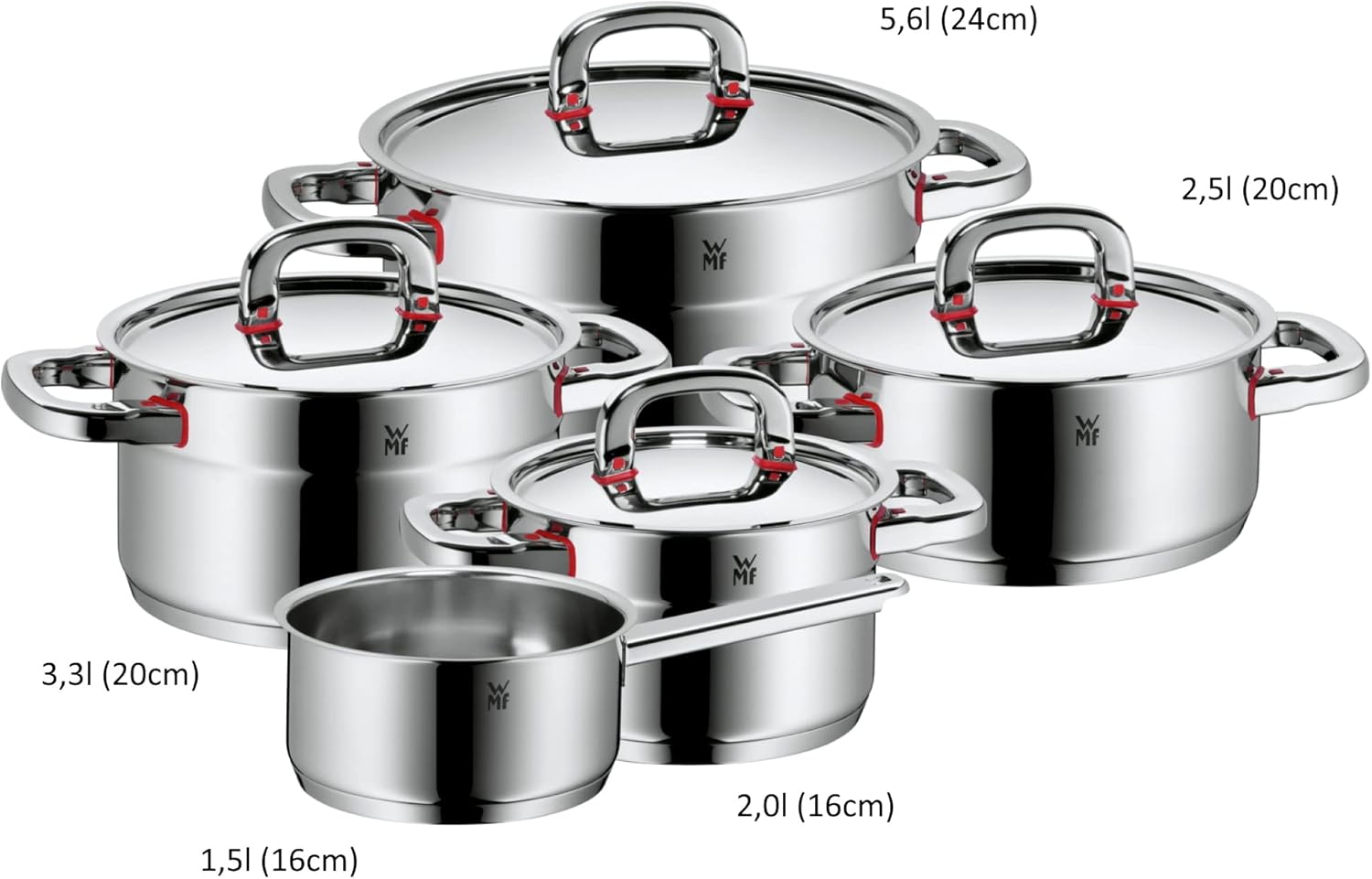 WMF Premium One Topfset Induktion 5-teilig, Kochtopf Set mit Metalldeckel, Cromargan Edelstahl poliert, Induktions Töpfe Set unbeschichtet, Innenskalierung, für alle Herdarten geeignet, backofenfest | قیمت یورویی 465.47€