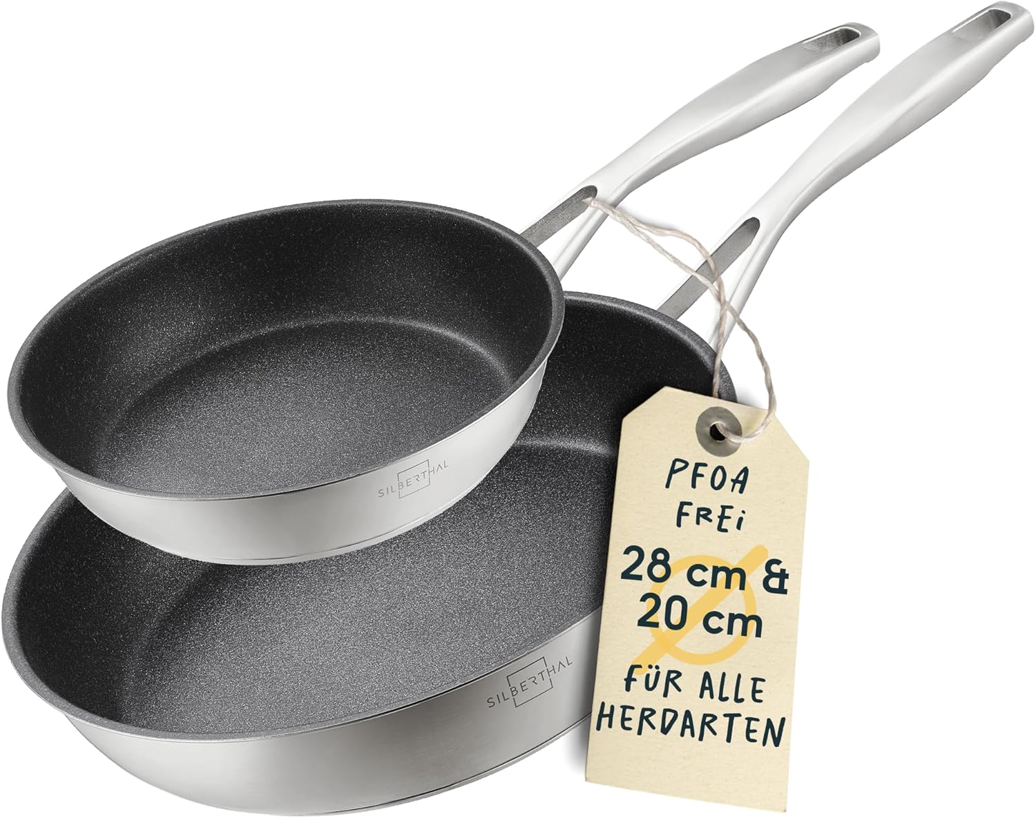 SILBERTHAL Induktion Pfannen Set - Bratpfannen 2er Set - Induktionsgeeignet - 28cm & 20cm - Edelstahl - Beschichtet Beschichtet 2er Set | 20 + 28cm | قیمت یورویی 99.95€