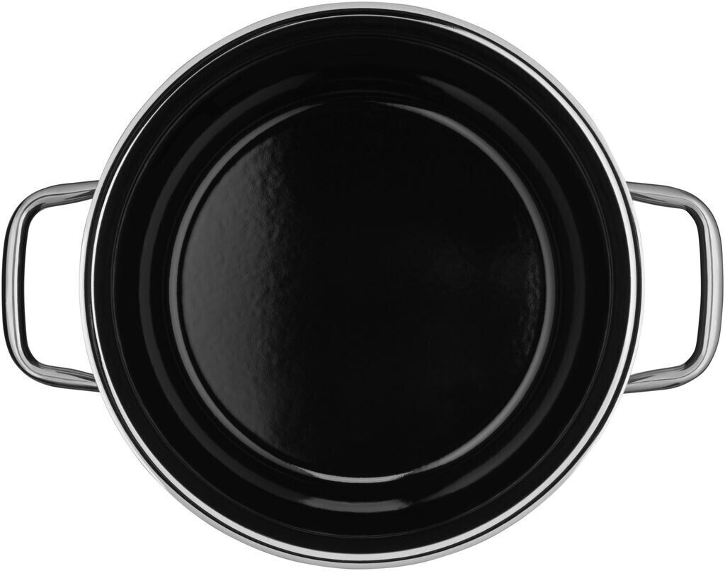 WMF Fusiontec Compact سرویس قابلمه 3 پارچه با طراحی خاص و رنگ مشکی، پوشش Fusiontec مقاوم، کف TransTherm® برای توزیع یکنواخت حرارت.