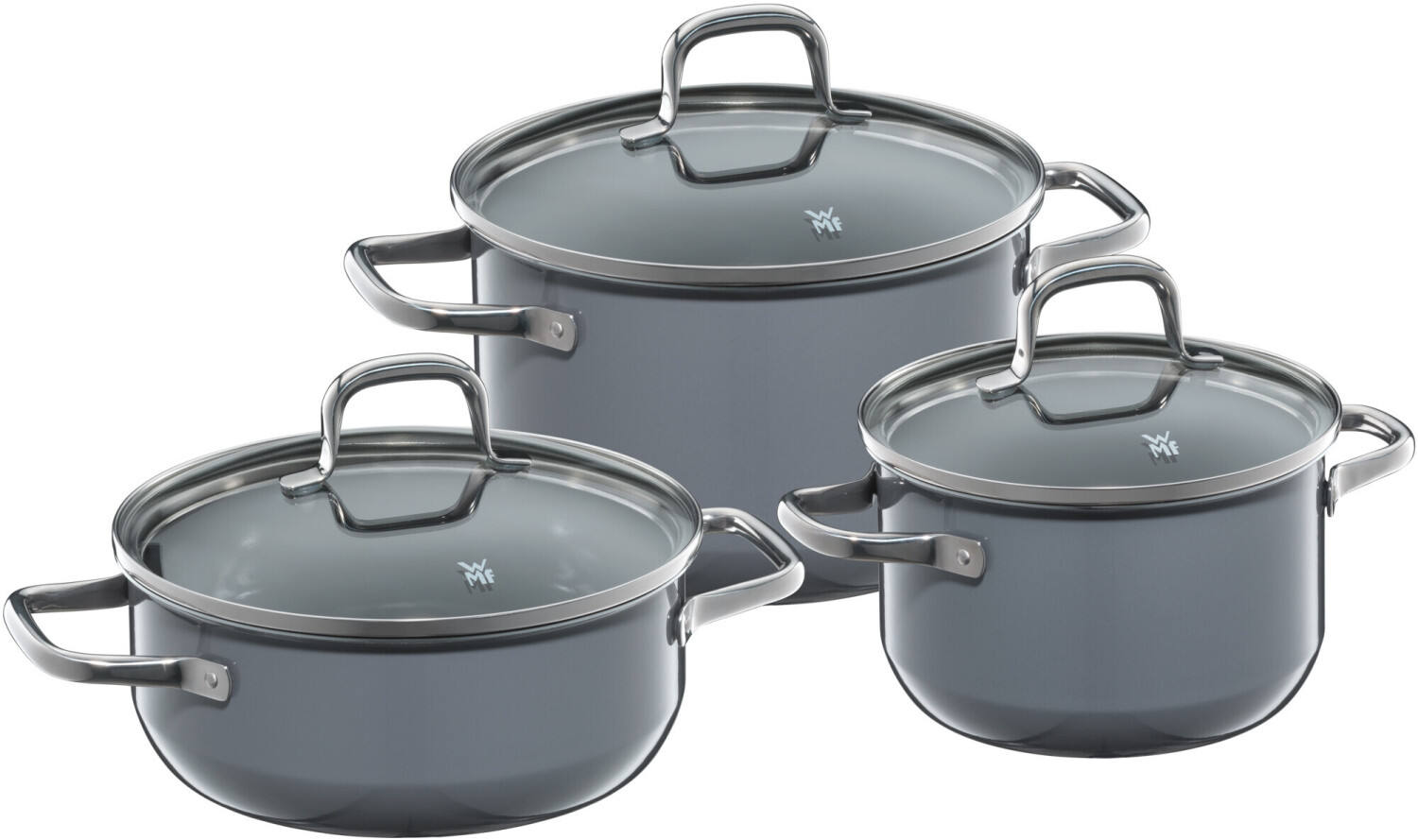 WMF Fusiontec Essential-سرویس قابلمه 3 پارچه با طراحی مدرن و رنگ Calm Grey، انتخابی بادوام برای آشپزی روزمره.