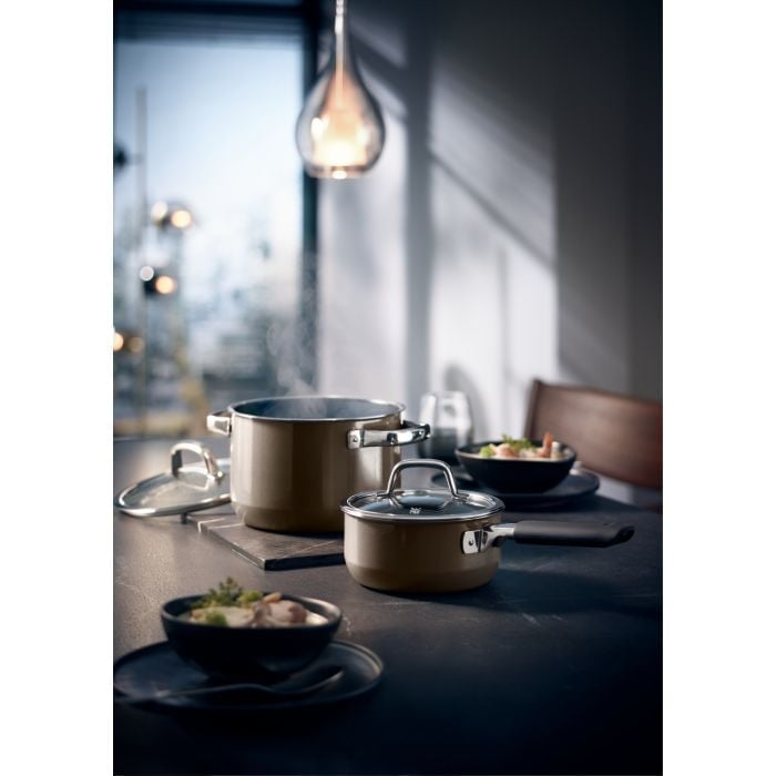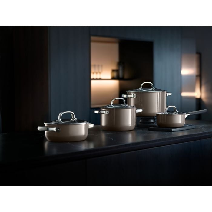 WMF FusionTec- سرویس قابلمه 4 تکه در رنگ زیبا و لوکس Dark Brass، مناسب برای آشپزی حرفهای، انتقال یکنواخت حرارت و ظاهری شیک است.