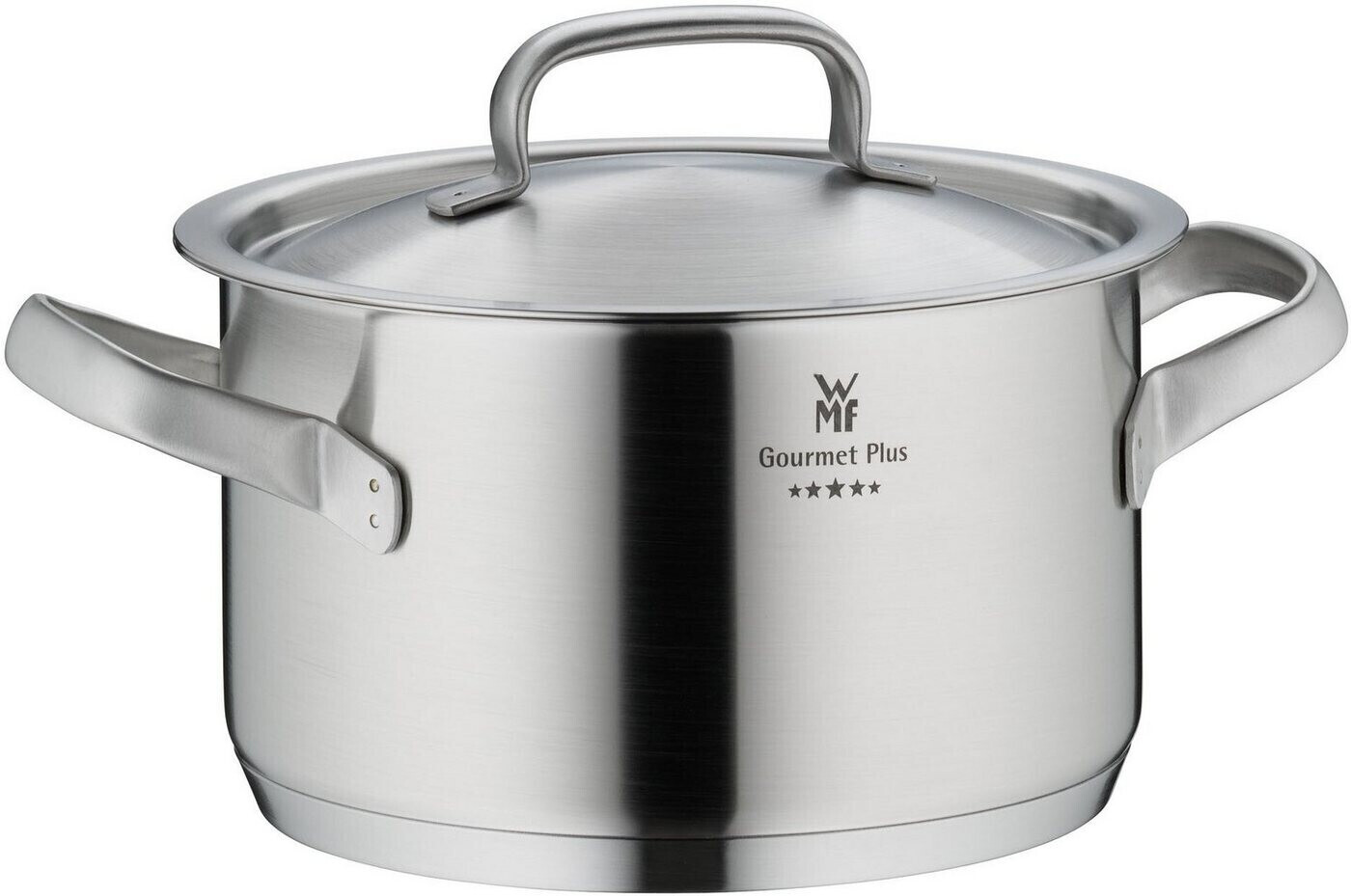 سرویس قابلمه 5 پارچه WMF Gourmet Plus، ساخته شده از استیل Cromargan 18/10 با کف TransTherm برای توزیع یکنواخت حرارت. مناسب برای انواع اجاقها و قابل شستشو در ماشین ظرفشویی.