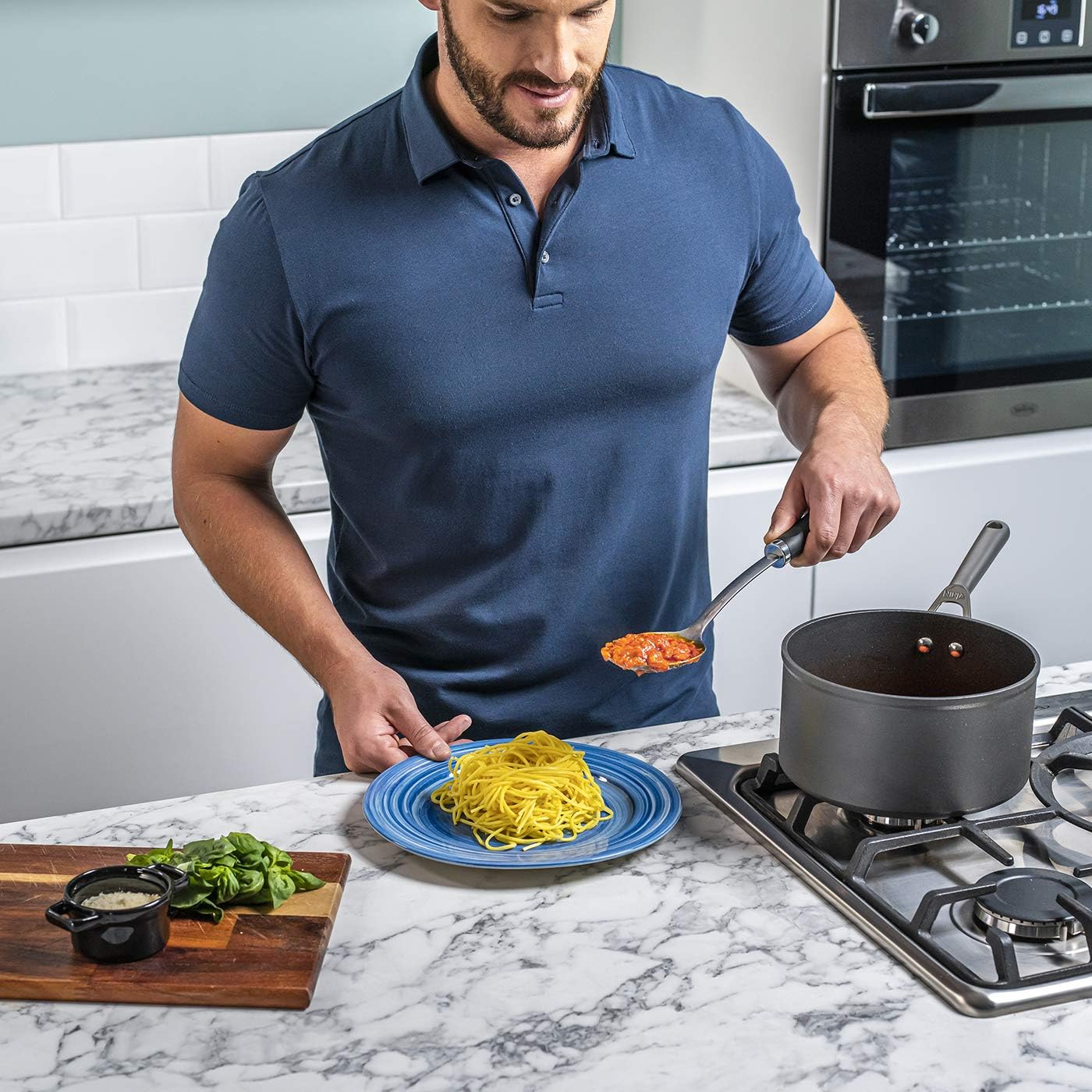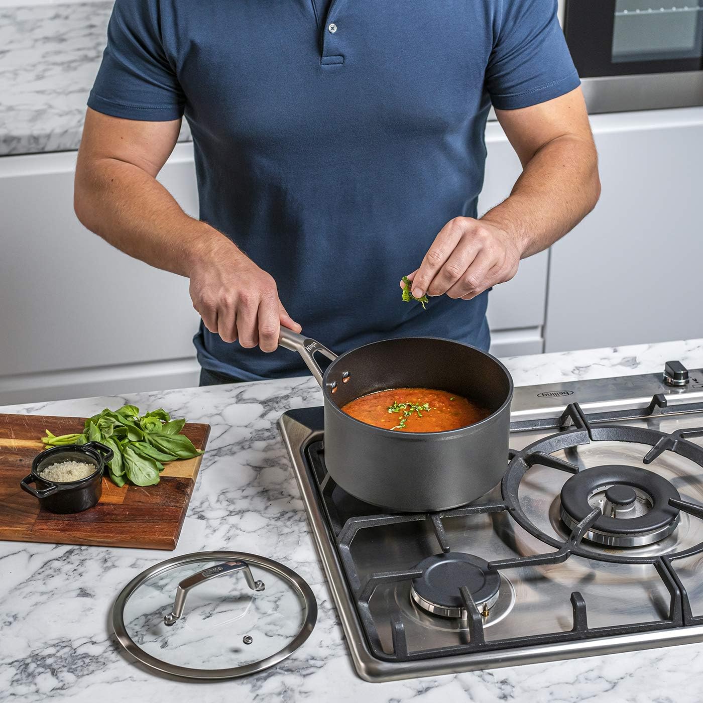 5-TEILIGES PFANNENSET: Enthält 16 cm, 18 cm und 20 cm Kochtöpfe mit backofenfesten Glasdeckeln, 16 cm Milchtopf und 24 cm Bratpfanne. Hergestellt aus strapazierfähigem geschmiedetem Aluminium, mit einer harteloxierten Außenseite und Griffen aus gegossenem Edelstahl, die angenehm in der Hand liegen KEIN ANKLEBEN, ABPLATZEN ODER ABLÖSEN: Die sehr langlebige Ninja Foodi ZEROSTICK kombiniert eine Plasma-Keramik-Verbindung mit Ninjas exklusiver Antihaftbeschichtung & schafft so eine robust strukturierte Oberfläche, die frei von Abplatzungen bleibt VERHINDERT, DASS LEBENSMITTEL ANHAFTEN, TAG FÜR TAG: Kochen Sie mit wenig bis gar keinem Öl. Braten Sie wie in Edelstahl, ohne Anhaften ROBUST & LANGLEBIG: Die äußerst strapazierfähige Kochfläche ist kratzfest, geeignet für Metallutensilien und spülmaschinenfest. Geeignet für alle Herdarten, einschließlich Induktion. Backofenfest bis zu 260°C BEINHALTET: Ninja Foodi 5-teiliges Pfannenset; 16 cm, 18 cm & 20 cm Kochtöpfe mit backofensicheren Glasdeckeln, 16 cm Milchtopf, 24 cm Bratpfanne. Spülmaschinenfest. Gewicht 5,5 kg, Farbe Grau 10-JAHRE ERSATZGARANTIE einschließlich der ZEROSTICK-Beschichtung, nach Registrierung bei Ninja (bei ordnungsgemäßer Verwendung gemäß der Gebrauchs- und Pflegeanleitung) | قیمت یورویی : 159€
