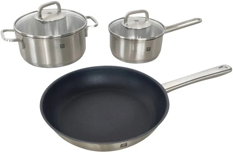 سرویس قابلمه 3 پارچه zwilling Cube از استیل ضد زنگ 18/10 با طراحی حرفهای ساخته شده است. این محصول دارای پایه چندلایه برای پخت یکنواخت، دستههای ارگونومیک و دربهای شیشهای مقاوم است. مناسب برای انواع اجاقها و قابل شستشو در ماشین ظرفشویی