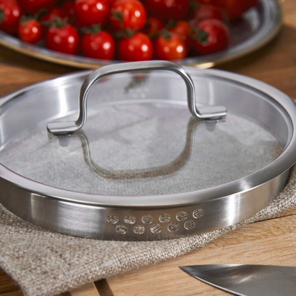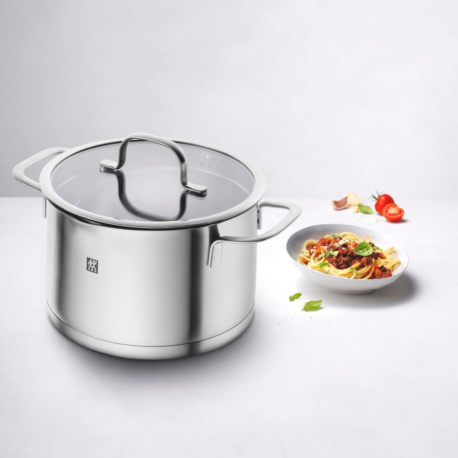 سرویس قابلمه 4 تکه زولینگ آلمان zwilling TrueFlow Kochtopfset، ترکیبی از چند قابلمه با اندازههای مختلف بوده و برای پخت انواع غذاها از سوپ و خورش گرفته تا سس و پاستا مناسب است. فناوری TrueFlow تعبیهشده در لبه قابلمهها، تخلیه مایعات را بسیار ساده و بدون چکه یا ریختوپاش میسازد. بدنه استیل ضد زنگ با قابلیت توزیع حرارت یکنواخت، عمر طولانی و کارایی بالایی دارد و استفاده از آن روی اجاق گاز یا القایی امکانپذیر است. دستههای مقاوم در برابر حرارت به شما این امکان را میدهد که با اطمینان قابلمهها را جابهجا کنید. درِ بعضی مدلها نیز شیشهای یا استیل بوده که ضمن حفظ رطوبت و طعم غذا، کنترل روند پخت را آسان میکند.