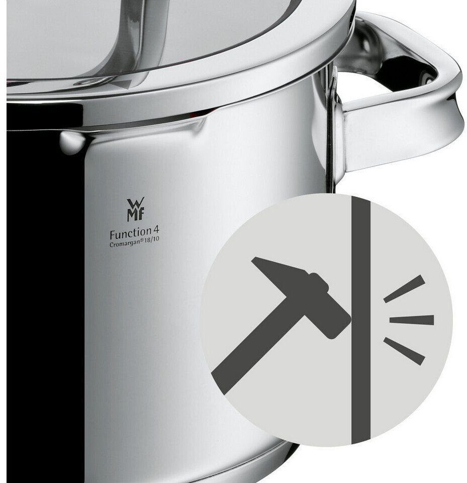 WMF Function 4 Black،سرویس قابلمه 4 پارچه ساختهشده از استیل ضد زنگ 18/10، دارای دربهای شیشهای مقاوم با حلقه سیلیکونی برای تنظیم خروج بخار، مجهز به کفه TransTherm جهت توزیع یکنواخت حرارت