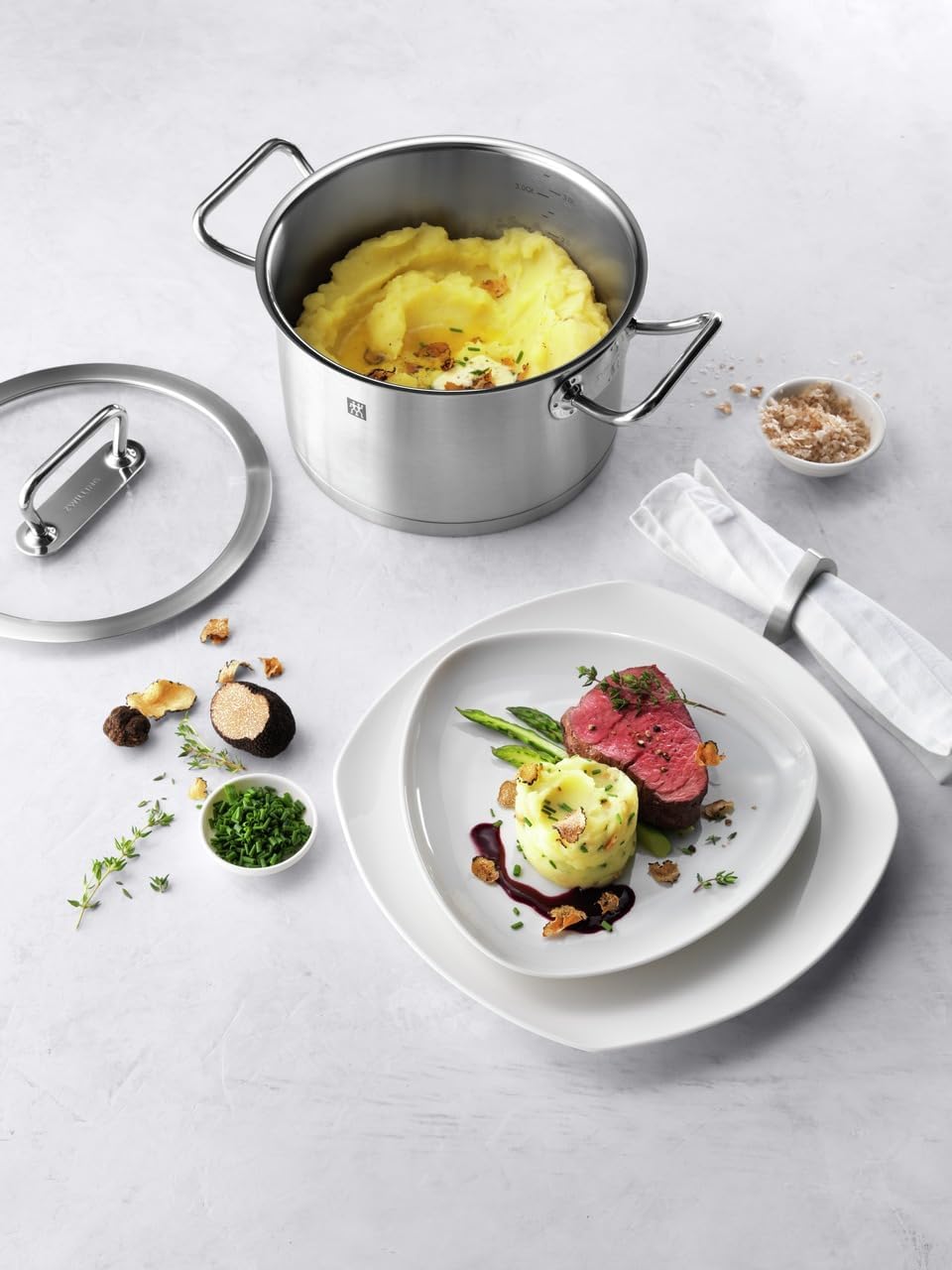 سرویس قابلمه 5 پارچه zwilling Pro از استیل ضد زنگ 18/10 با دربهای شیشهای مقاوم و پایه چندلایه برای توزیع یکنواخت حرارت ساخته شده است. دستههای ارگونومیک و طراحی حرفهای این سرویس، استفاده از آن را آسان و ایمن میکند. مناسب برای اجاقهای القایی و قابل شستشو در ماشین ظرفشویی