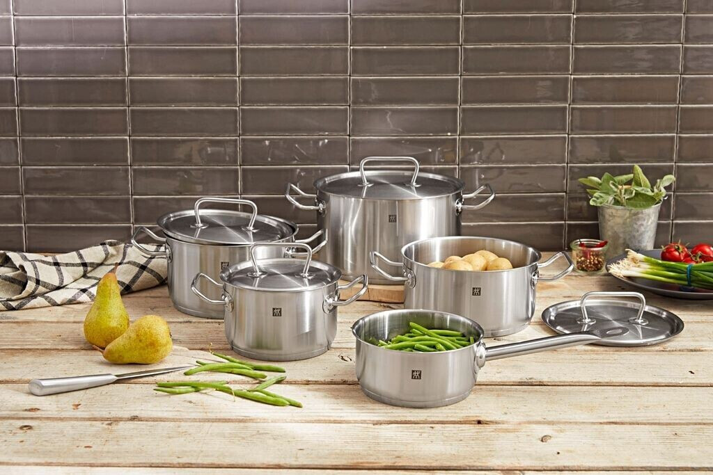 سرویس قابلمه zwilling Vitality شامل 5 قابلمه از استیل ضد زنگ 18/10 است. مناسب برای پختوپز حرفهای و خانگی، دارای پایه چندلایه، دستههای ارگونومیک و دربهای مقاوم.