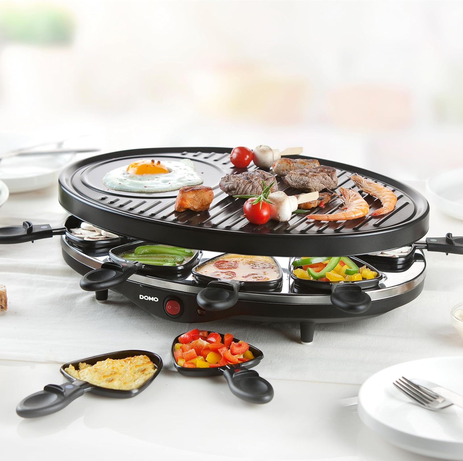 DOMO DO9038G Gourmetset - 8 P - Raclette-Pfännchen und Holzspatel inklusive - 1200 W Oval | قیمت یورویی 35.27€