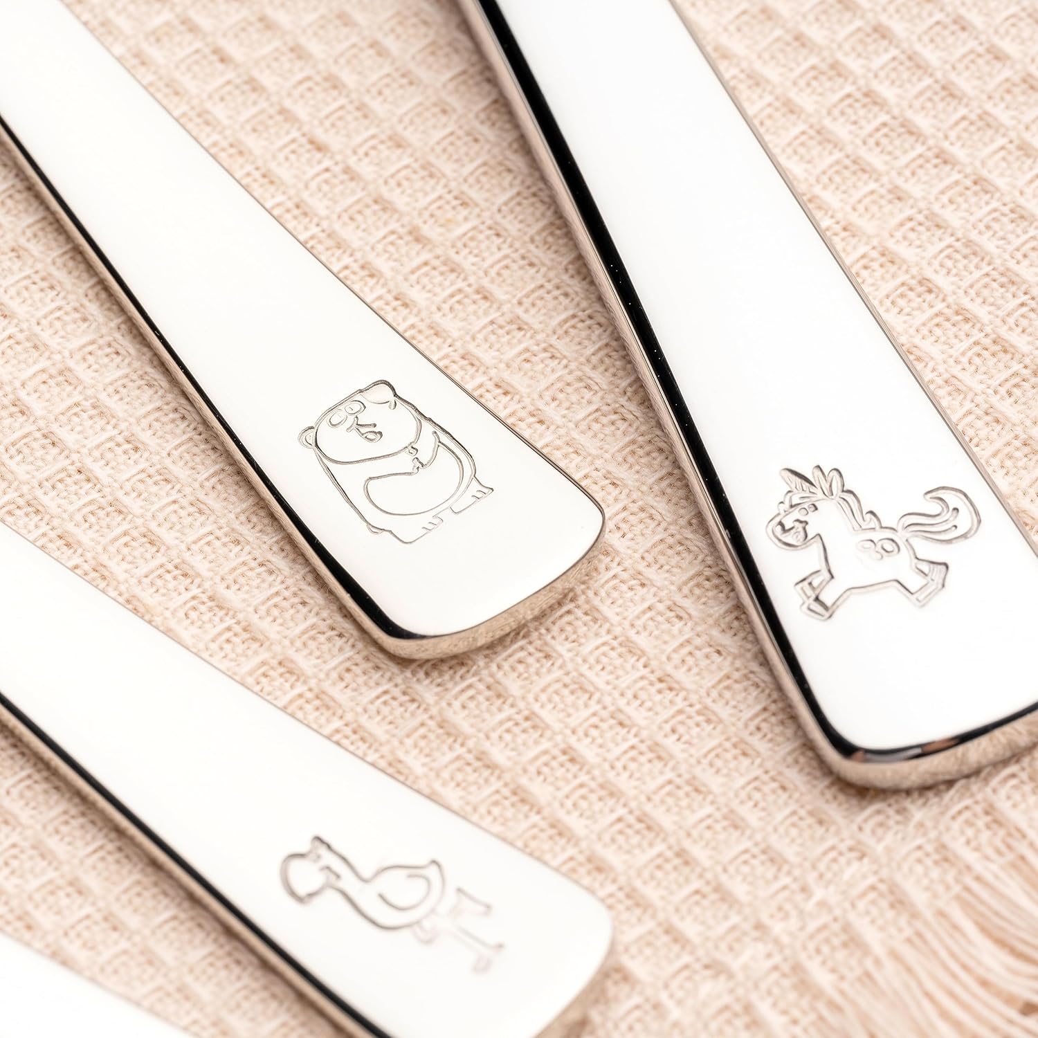 LEONARDO HOME Bambini Avventura Kinder-Besteck Set 4-teilig - Besteck mit Motiven aus hochwertigem Edelstahl - Spülmaschinengeeignet - Mit Tier-Motiven Panda, Einhorn, Sonne - Gravierbar, 070799 Panda, Einhorn, Flamingo | قیمت یورویی 31.8€