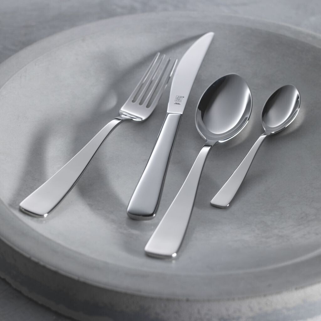 سرویس قاشق چنگال و کارد 68 پارچه زولینگ مدل Soho، ترکیبی از طراحی مدرن و کیفیت بالا است. ساخته شده از استیل ضد زنگ 18/10 با سطح براق، مناسب برای پذیراییهای رسمی و استفاده روزمره.