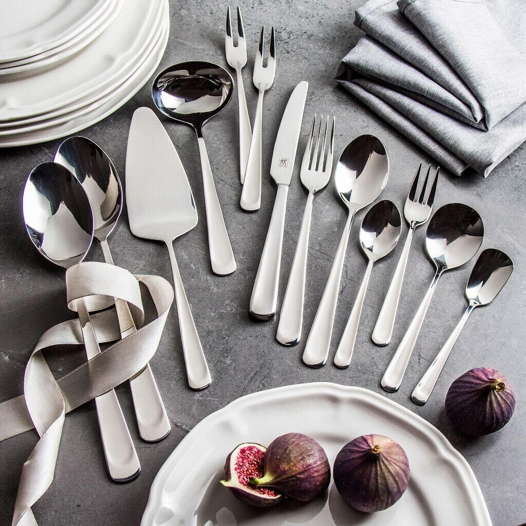 سرویس قاشق چنگال و کارد 68 پارچه زولینگ مدل Wakefield، ساختهشده از استیل ضد زنگ 18/10 با طراحی مدرن و سطح براق، گزینهای ایدهآل برای پذیراییهای رسمی و استفاده روزمره است.