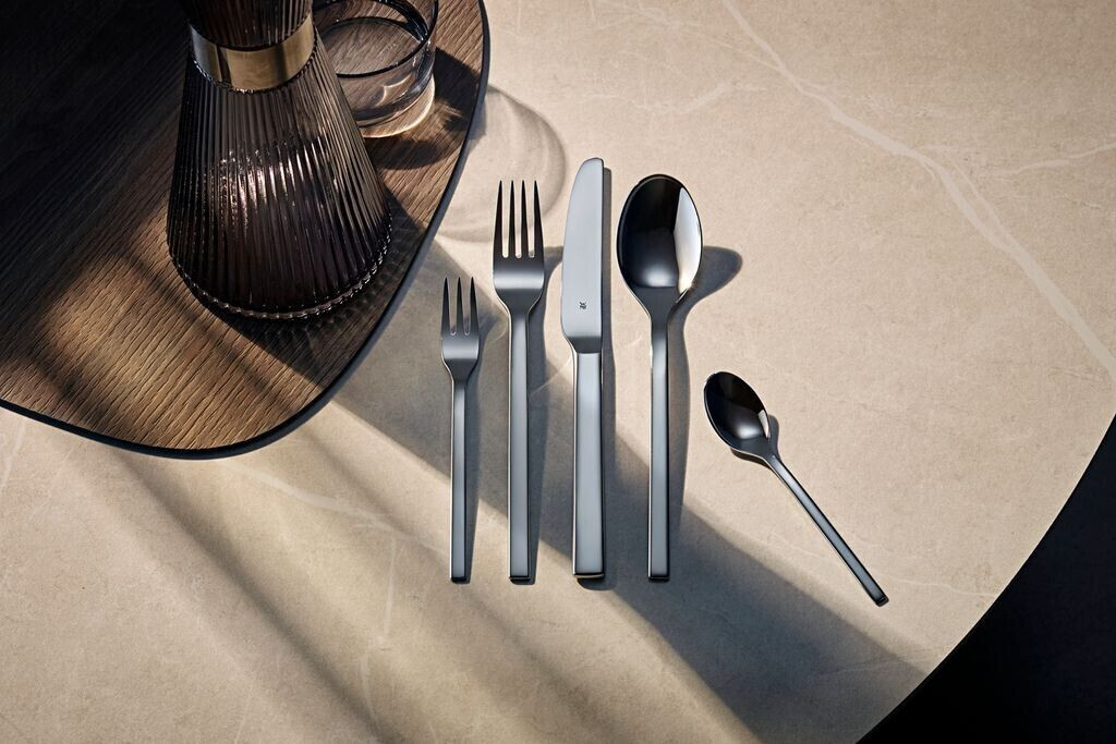 سرویس قاشق چنگال 30 پارچه WMF Tavira از استیل ضد زنگ با فناوری Cromargan ساخته شده که آن را در برابر زنگزدگی، خط و خش و لکه مقاوم میکند