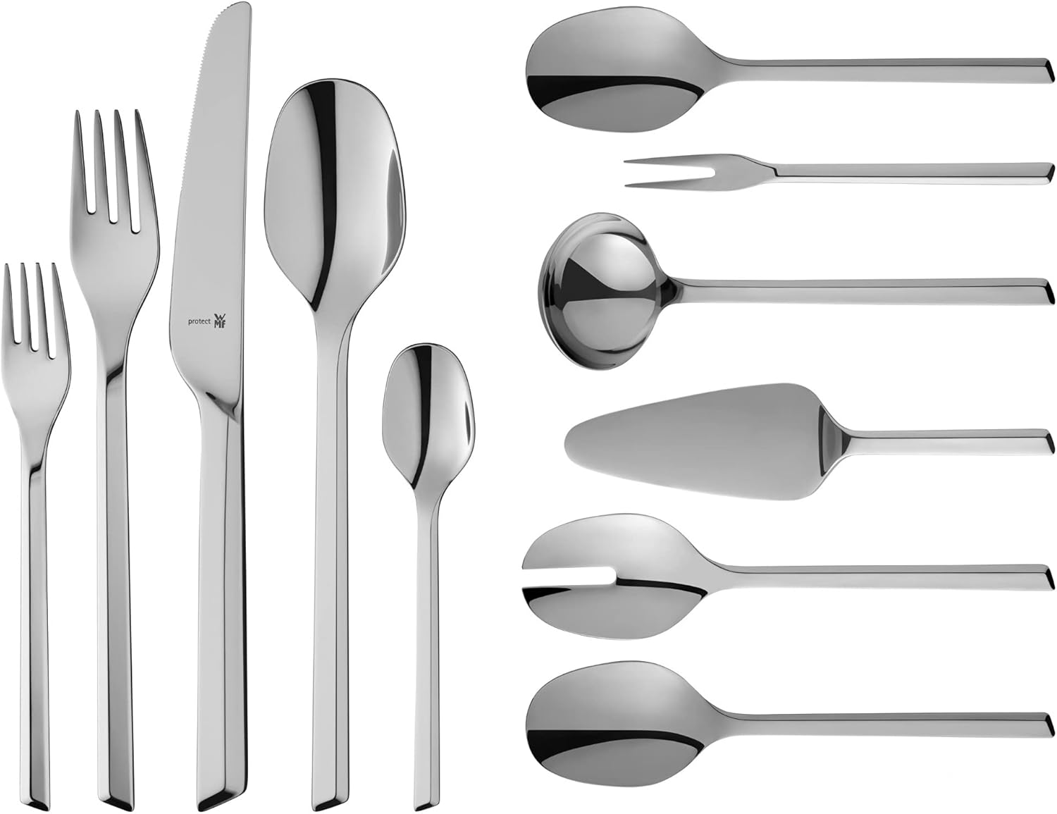 سرویس قاشق چنگال 66 پارچه WMF Kineo از استیل ضد زنگ با فناوری Cromargan ساخته شده که در برابر زنگزدگی، خط و خش و لکه مقاوم است