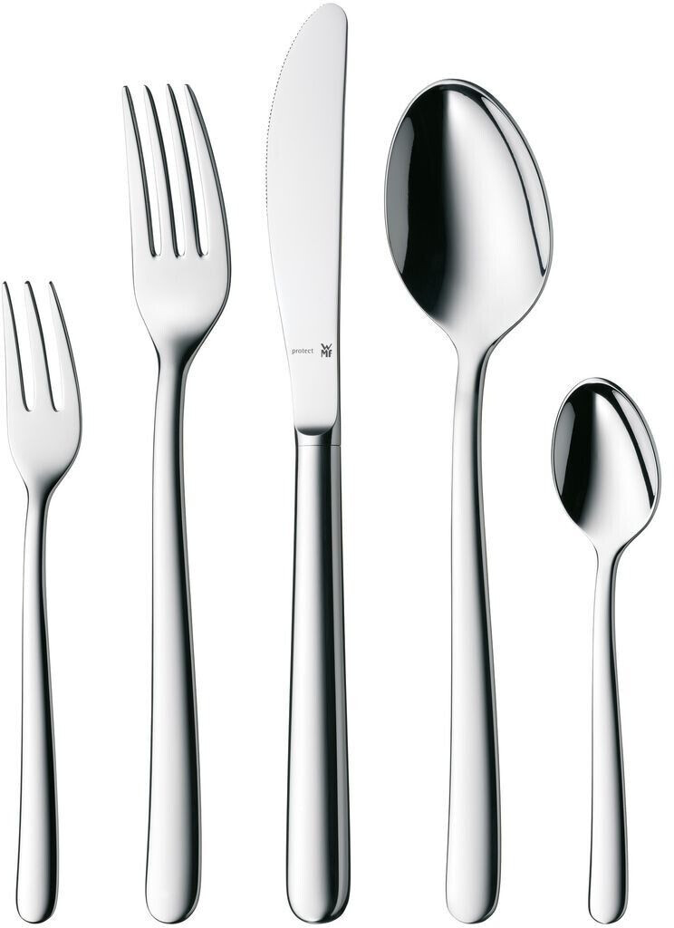 سرویس قاشق چنگال 66 پارچه WMF Kult با طراحی مینیمال و شیک، انتخابی عالی برای میز پذیرایی شماست. این ست از استیل ضد زنگ 18/10 با فناوری Cromargan® تولید شده که موجب درخشندگی طولانیمدت و مقاومت در برابر خط و خش، لکه و زنگزدگی میشود.
