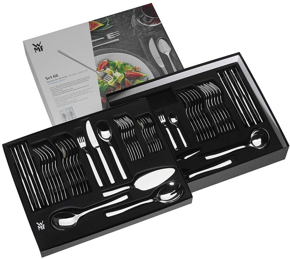 سرویس قاشق چنگال 68 پارچه WMF Sonic از استیل ضد زنگ با فناوری Cromargan ساخته شده که در برابر زنگزدگی، خط و خش و لکه مقاوم است
