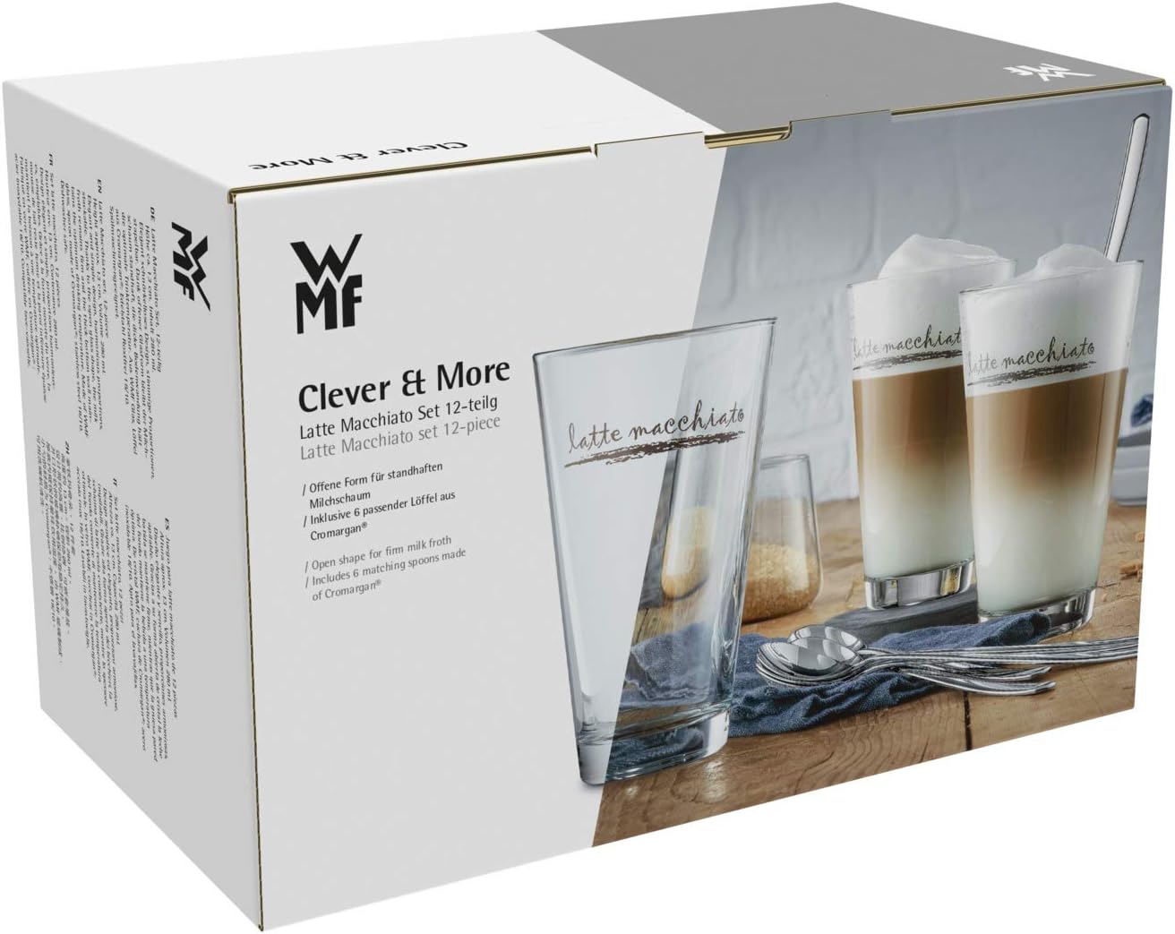WMF Clever&More Latte Macchiato Gläser Set 12-teilig mit Löffel, Aufrdruck, 280 ml,spülmaschinengeeignet, 25,5 x 17,5 x 15,5 cm Single | قیمت یورویی 33.78€