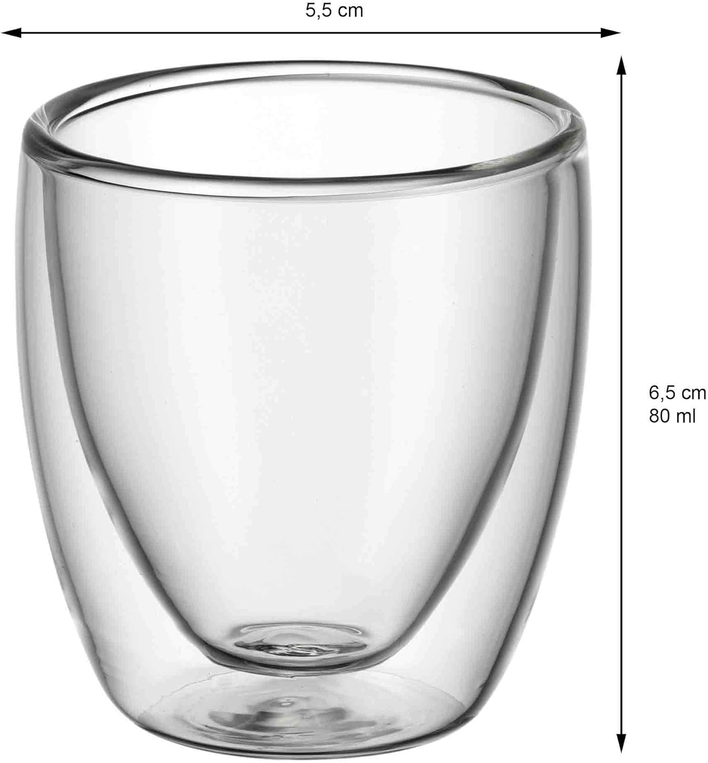 WMF Kult doppelwandige Espressotassen Glas Set 6-teilig, doppelwandige Gläser 80ml, Schwebeeffekt, Thermogläser, hitzebeständiges Espresso Glas 6 Stück (1er Pack) Single | قیمت یورویی 30.52€