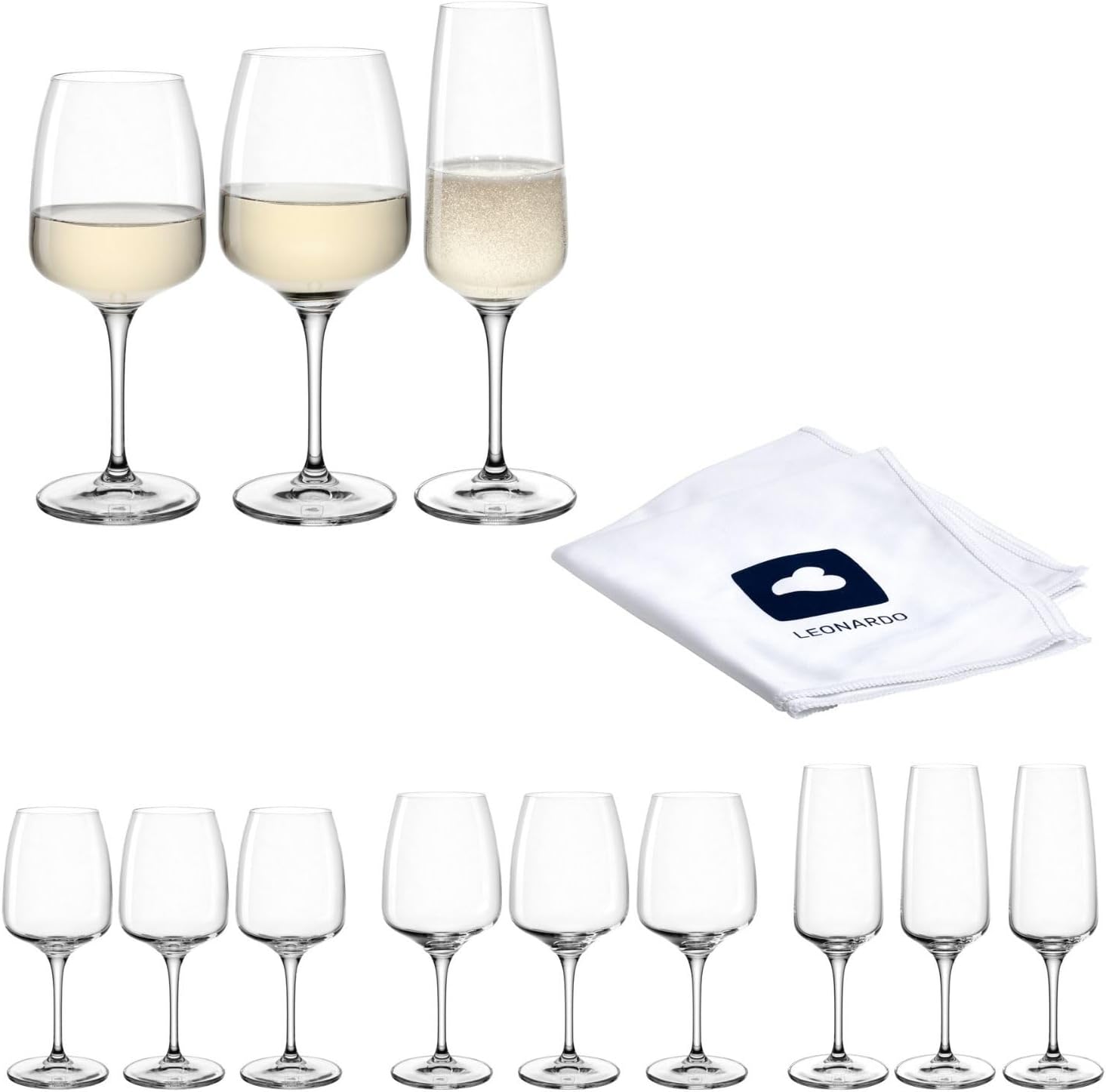 LEONARDO HOME Kelchglasset CESTI (12er Set) inkl. Poliertuch • Spülmaschinenfeste Kelchgläser • Stoßfest & Alltagstauglich • Hochwertige Weingläser mit niedrigem Stil • Moderne Sektgläser • 040976 12tlg. Kelchglasset + Poliertuch | قیمت یورویی 54.89€