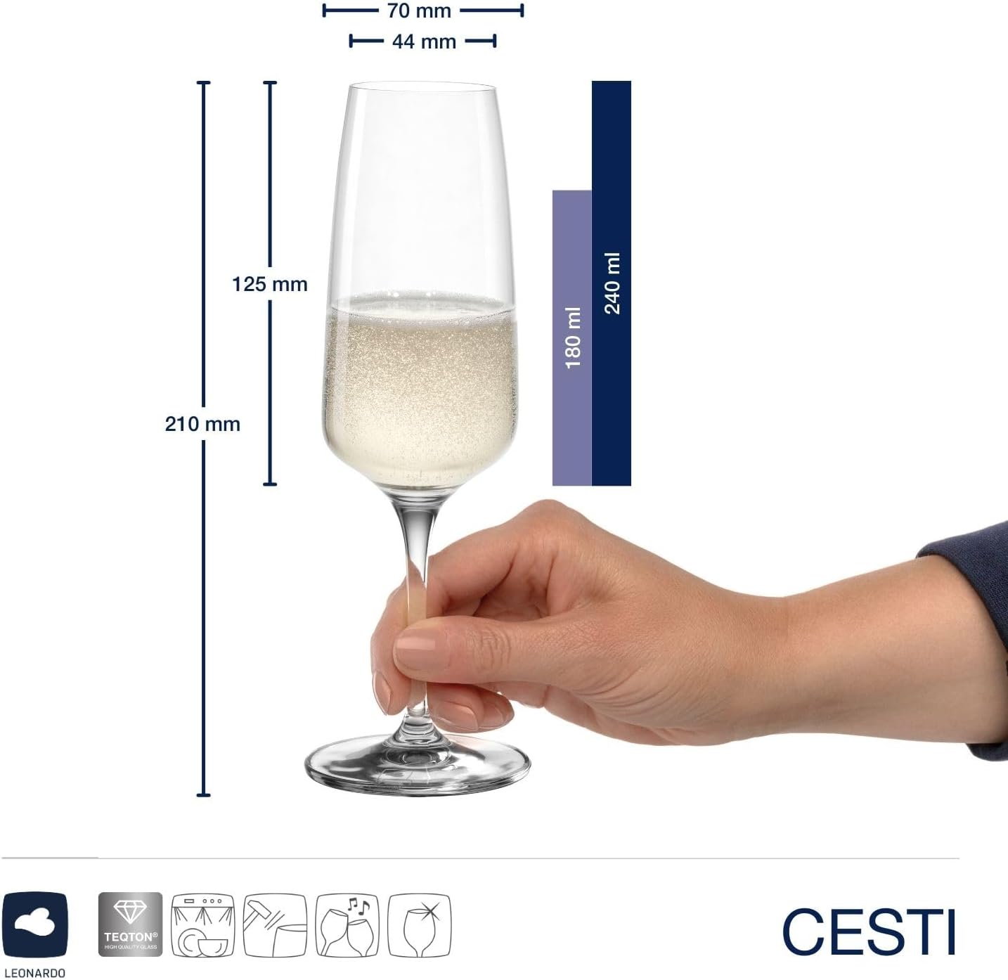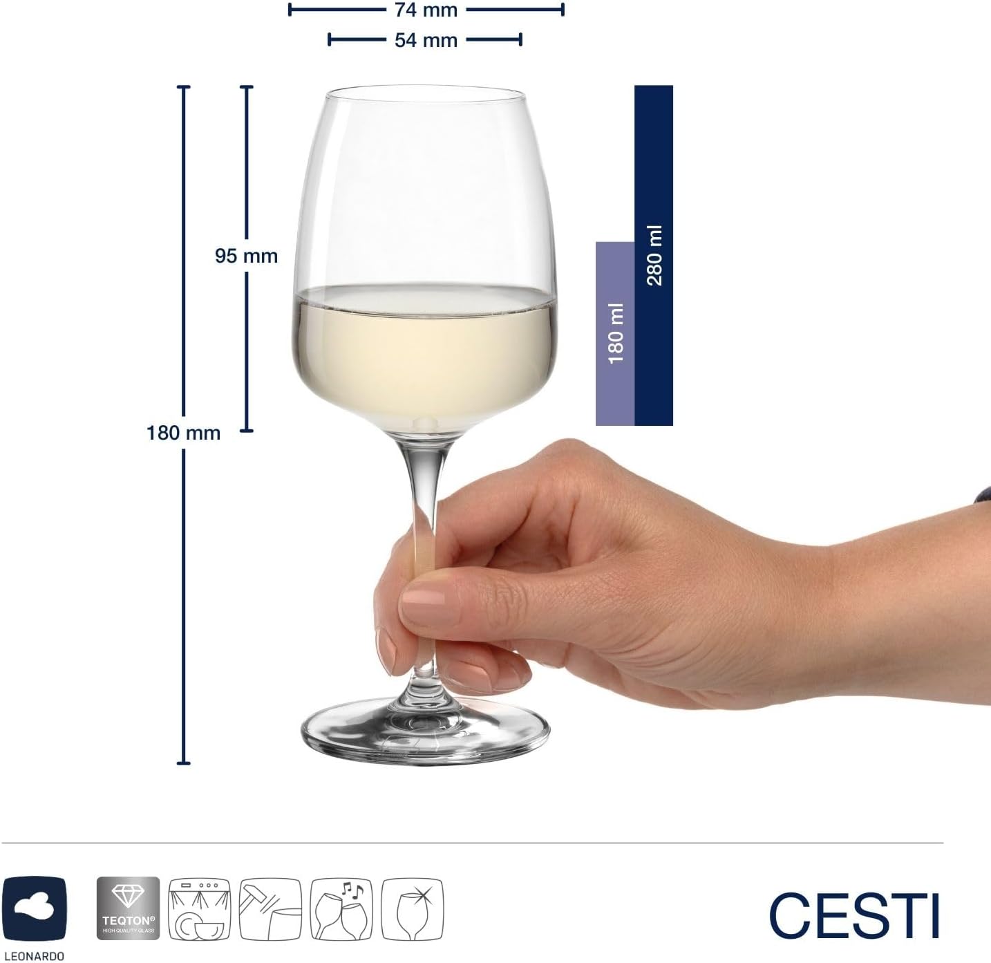 سرویس لیوان LEONARDO HOME CESTI (مجموعه ۱۲ عددی) شامل پارچه جلا دهنده • لیوانهای قابل شستشو در ماشین ظرفشویی • مقاوم در برابر ضربه و مناسب برای استفاده روزمره • لیوانهای شراب با کیفیت بالا و دسته کوتاه • لیوانهای شامپاینی مدرن • سرویس لیوان ۱۲ عددی + پارچه جلا دهنده ۰۴۰۹۷۶