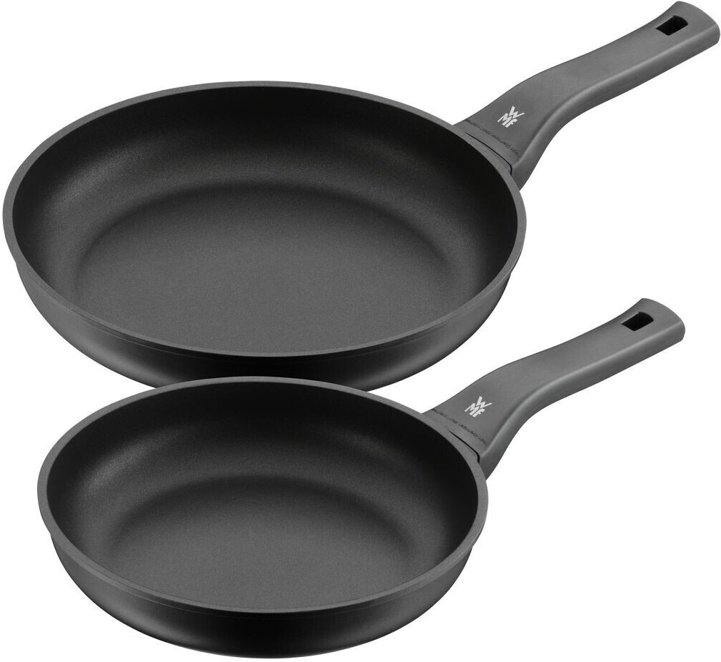 سرویس ماهیتابه WMF PermaDur Excellent شامل دو عدد تابه در سایزهای ۲۴ و ۲۸ سانتیمتر، ساختهشده از آلومینیوم ریختهگری با پوشش نچسب PermaDur، کف TransTherm® برای پخش یکنواخت حرارت و مناسب برای تمامی اجاقها، از جمله القایی.