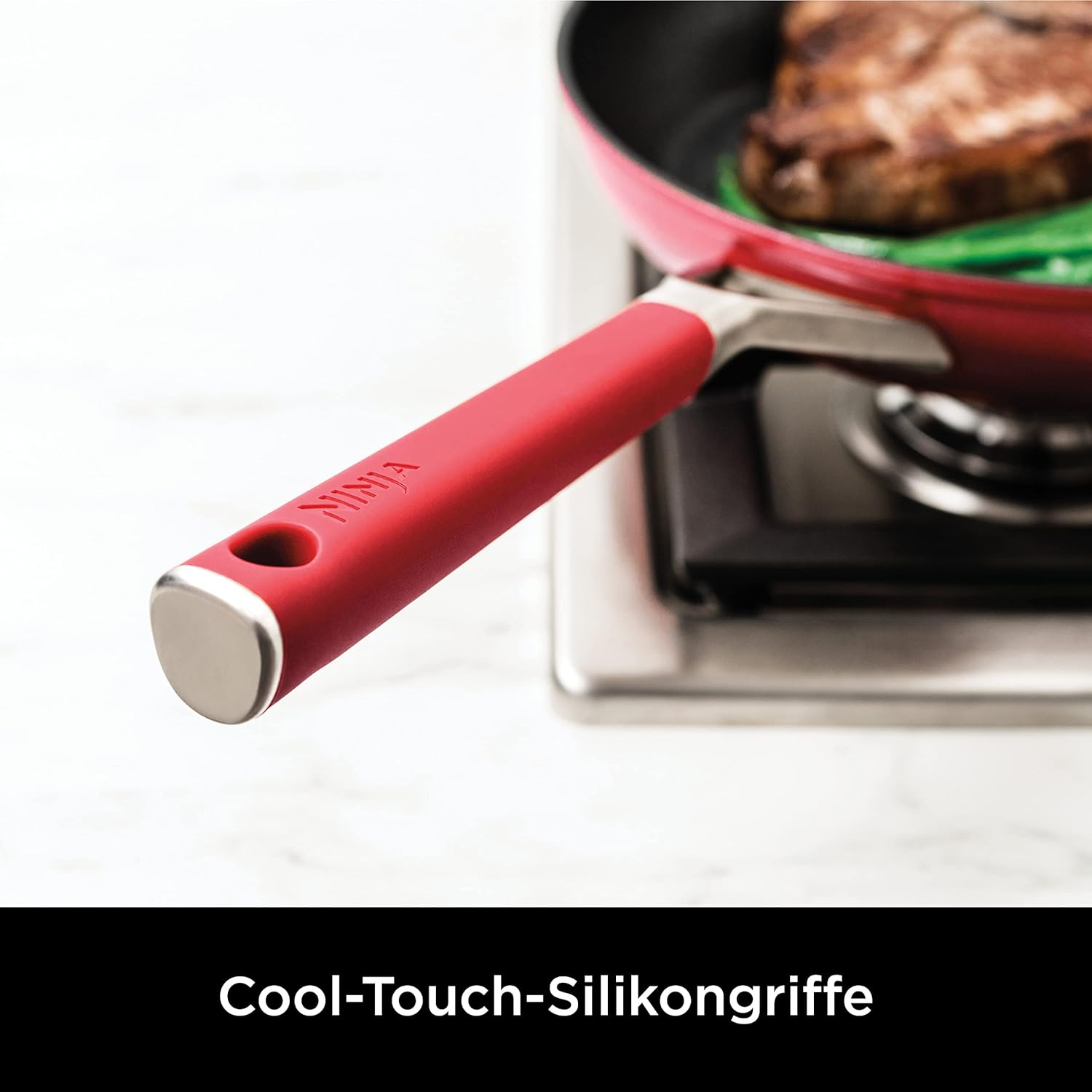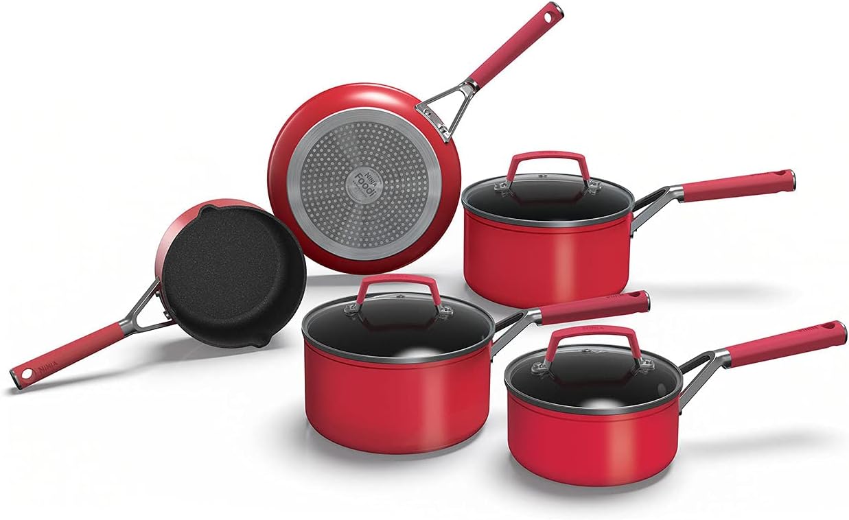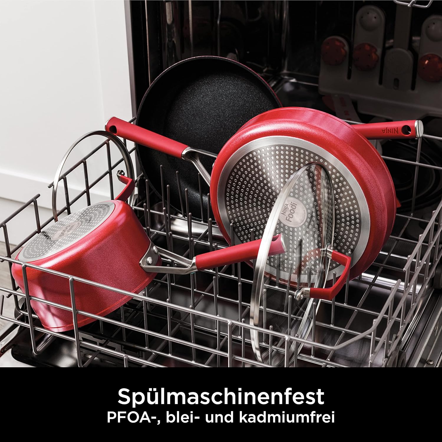 Ninja Foodi ZEROSTICK Vivid 5-teiliges Kochset, 3 Kochtöpfe, 1 Milchtopf, 1 Bratpfanne, Aluminium, antihaftbeschichtet, induktionsgeeignet, ofenfest bis 200°C, spülmaschinenfest, Tiefrot, C23000EU 5-teiliges Topf- und Pfannenset | قیمت یورویی 123.67€
