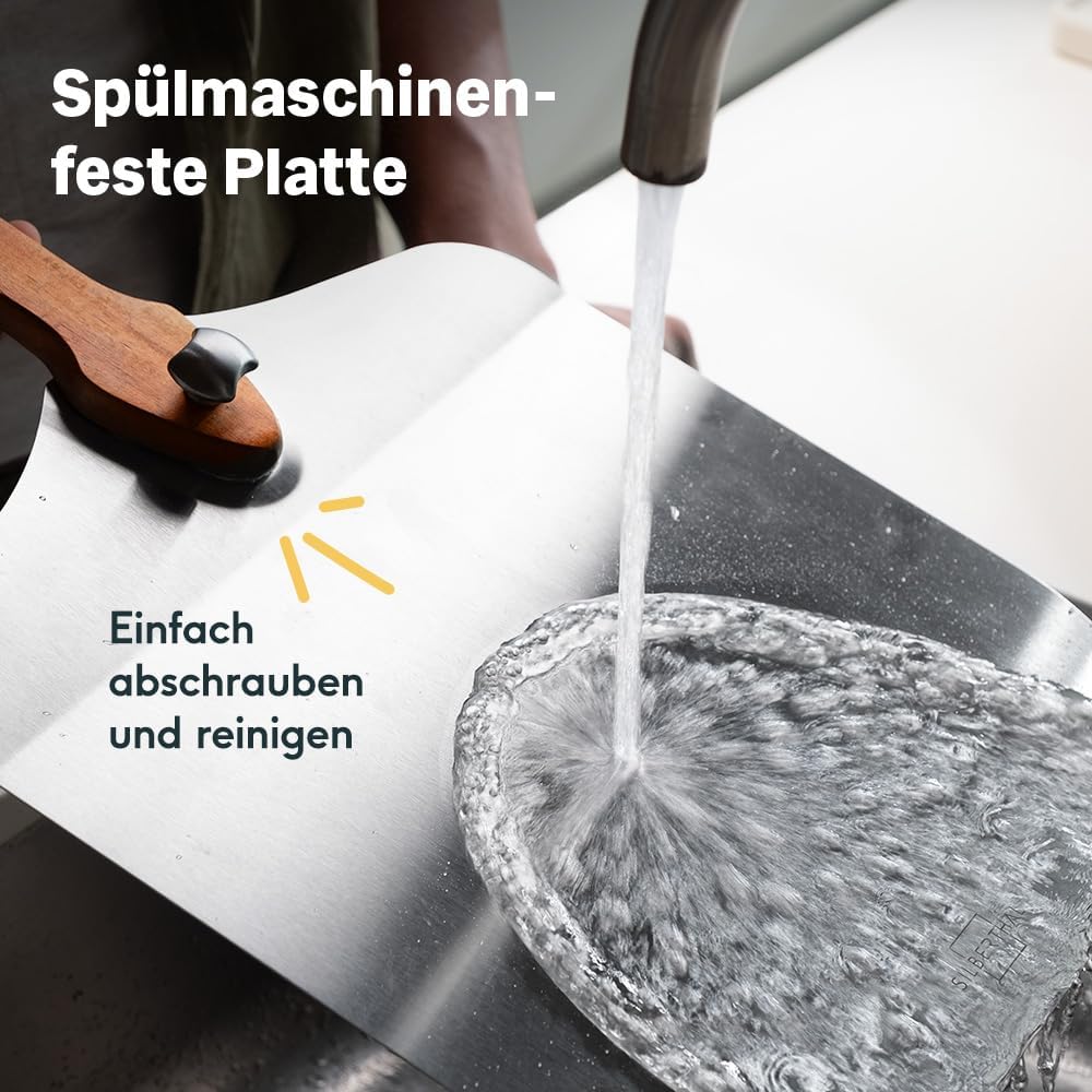 🍕 2-teiliges Pizza-Set aus Edelstahl & Akazienholz - Pizzaschneider & Pizzaschieber im Set – perfekt für zuhause, Grill oder Steinofen. Profi-Qualität für echten Pizza-Genuss. 🔪 Belagschonend schneiden mit 32cm Edelstahlklinge- Ein Schnitt – kein Verrutschen. Der Holzgriff sorgt für sicheren Halt, ideal für Pizza, Flammkuchen oder Brot. 🔥 Pizzaschieber einklappbar & flach – ideal für den Ofen - 30cm Edelstahl-Schaufel mit Holzgriff & Schlaufe. Leicht unter die Pizza schieben, einklappbar & platzsparend. 🛡️ Robustes & langlebiges Set aus rostfreiem Edelstahl - Stabil, rostfrei & sicher dank Klingenschutz. Für langanhaltende Schärfe und professionelle Ergebnisse. 📦 Einfach zu reinigen & aufzuhängen - Beide Teile mit Schlaufe – schnell abwaschen, trocknen & aufhängen. Immer griffbereit, ohne Schubladenchaos. | قیمت یورویی : 44.95€