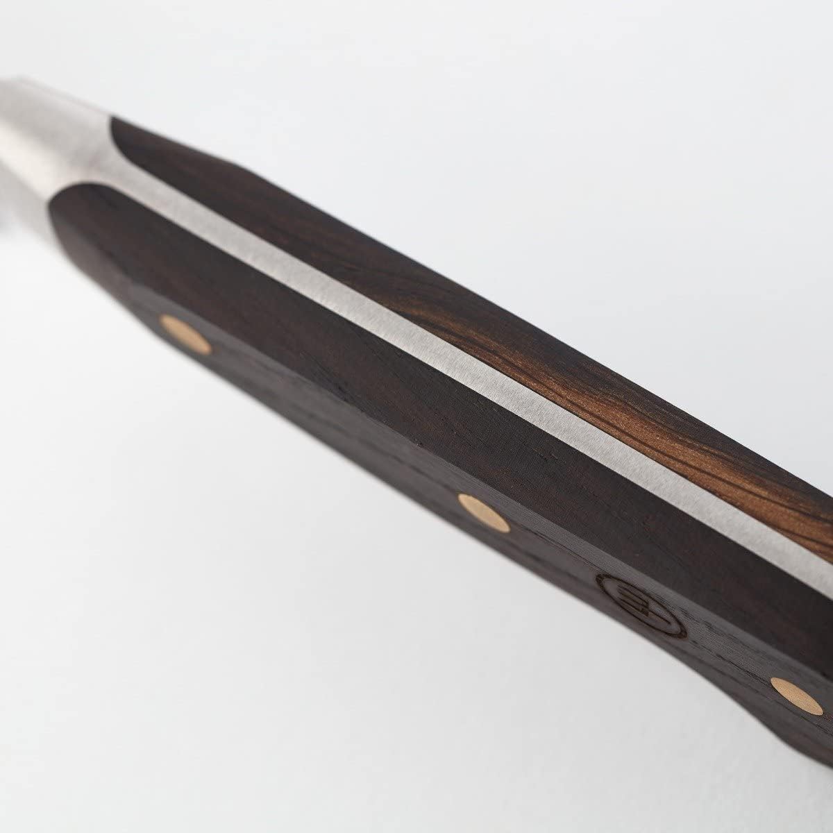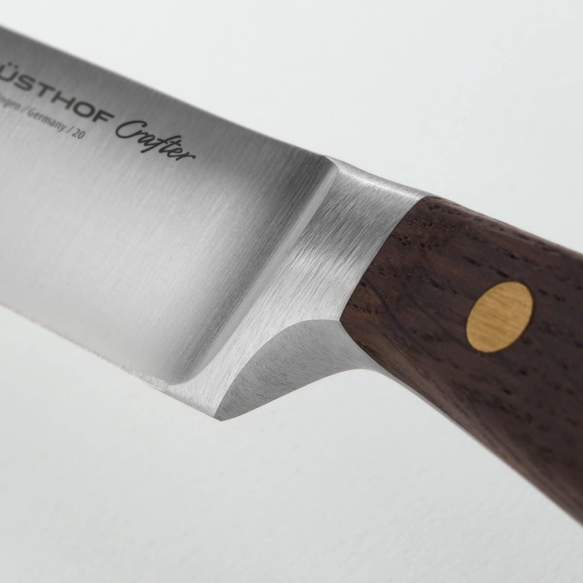 Formschöne und zugleich robuste Fleischmesser für qualitätsbewusste Genießer, die nicht nur perfekt zubereitete Steaks vom Grill lieben, sondern auch einen Sinn für traditionelle Werte und natürliche Materialien haben Ob Medium rare oder Well done, Rind oder Schwein, Wild oder Geflügel, die scharfen Messer schneiden leicht durch jedes Fleisch. Mit der 120 mm langen, glatten Klinge sind sie optimal für Steaks, Braten, Grillfleisch und alle anderen Fleischgerichte Die schönen Messer liegen gut in der Hand, sie sind fein ausbalanciert und Sie können damit kräftig schneiden. Die Holzgriffe aus geräucherter Eiche mit Nieten aus Messing verleihen einen ausgesuchten, unverwechselbaren Charakter und schmücken jeden Tisch Die Klingen sind extrem hart und bleiben sehr lange scharf. Sie werden aus kohlenstoffreichem Klingenstahl geschmiedet, auf 58 Rockwell gehärtet und von Hand in bewährter Schleifertradition beidseitig geschliffen – 4 sehr gute Messer Die Crafter Messerserie setzt mit der sorgfältigen Rohstoffauswahl aus Räuchereiche, Messing und Edelstahl einen bewussten Kontrapunkt zu schnelllebigem Konsumdenken. Bitte reinigen Sie die Markenmesser von Hand. Made in Germany – geschmiedet in Solingen | قیمت یورویی : 349€
