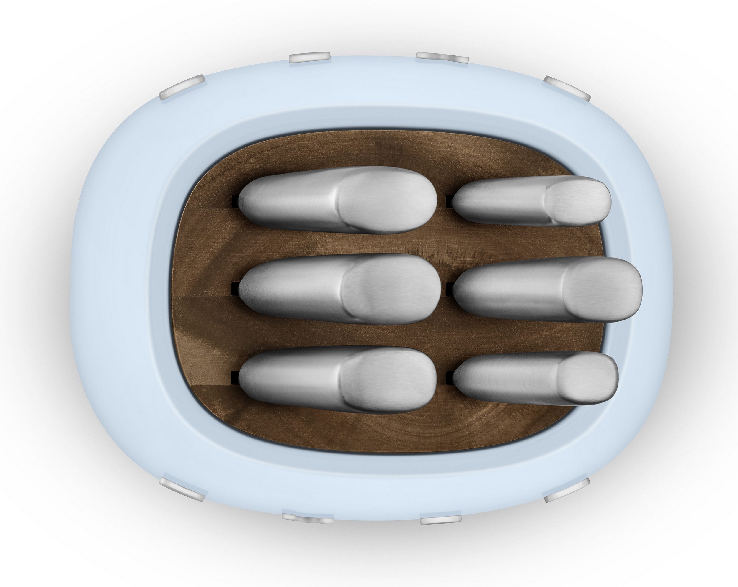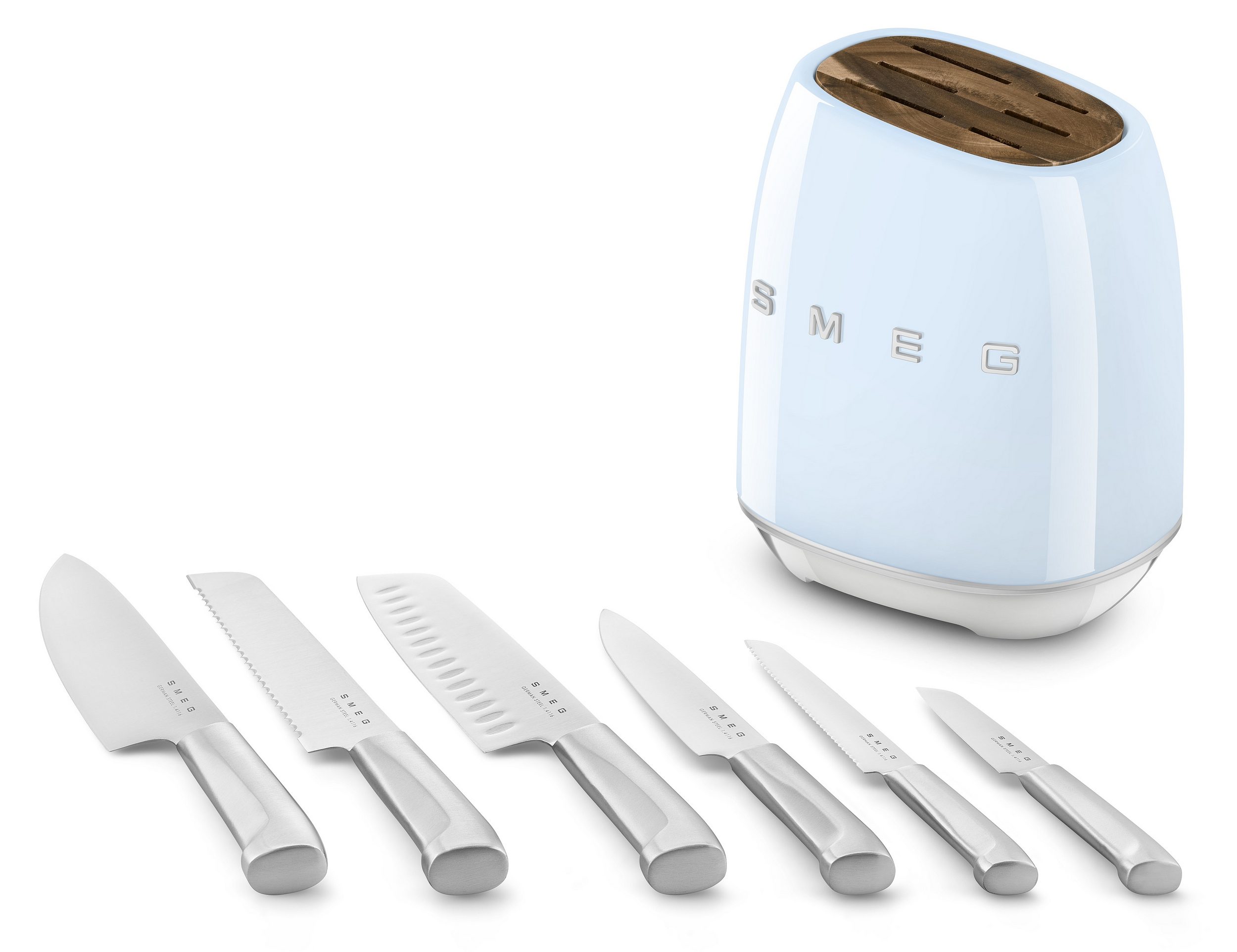 سرویس چاقو اسمگ مدل Pastel Blue با طراحی الهام گرفته از سبک دهه 50 میلادی و رنگ آبی، جلوه ای خاص به آشپزخانه می بخشد.