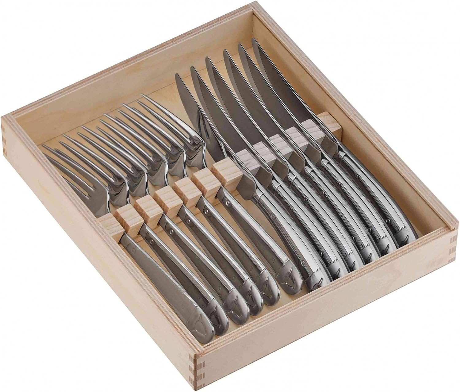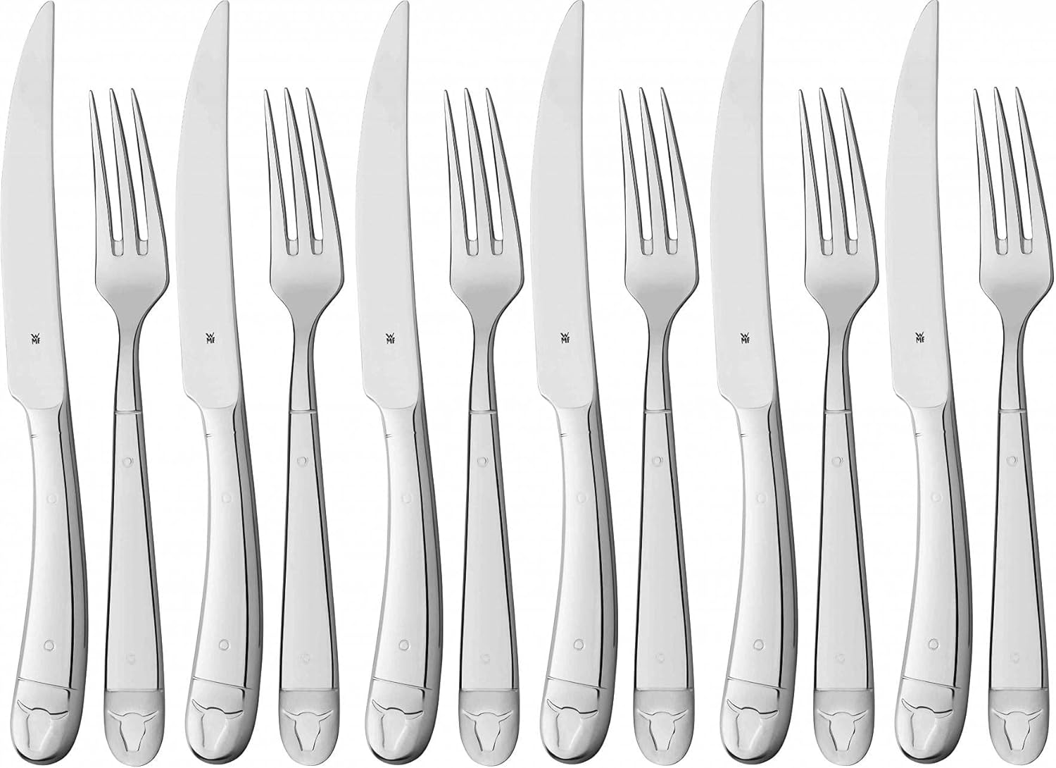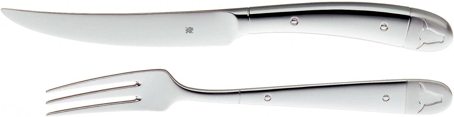 WMF Steakbesteck 12-teilig, Steakbesteck Set für 6 Personen, Steakmesser Set, Steakgabel, Cromargan Edelstahl poliert, Grillbesteck in Holzkiste | قیمت یورویی 79.99€