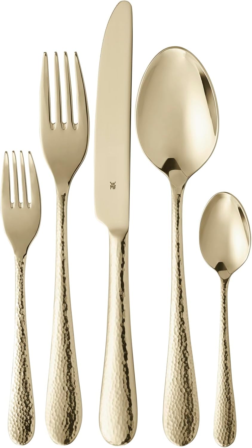 WMF Sitello Besteck Set 6 Personen, Gold-Edition, Essbesteck Set 30 teilig, Monobloc-Messer, Cromargan Edelstahl poliert, Hammerschlag, ergonomisch, glänzend, gold Sitello Gold 30-teilig | قیمت یورویی 295€