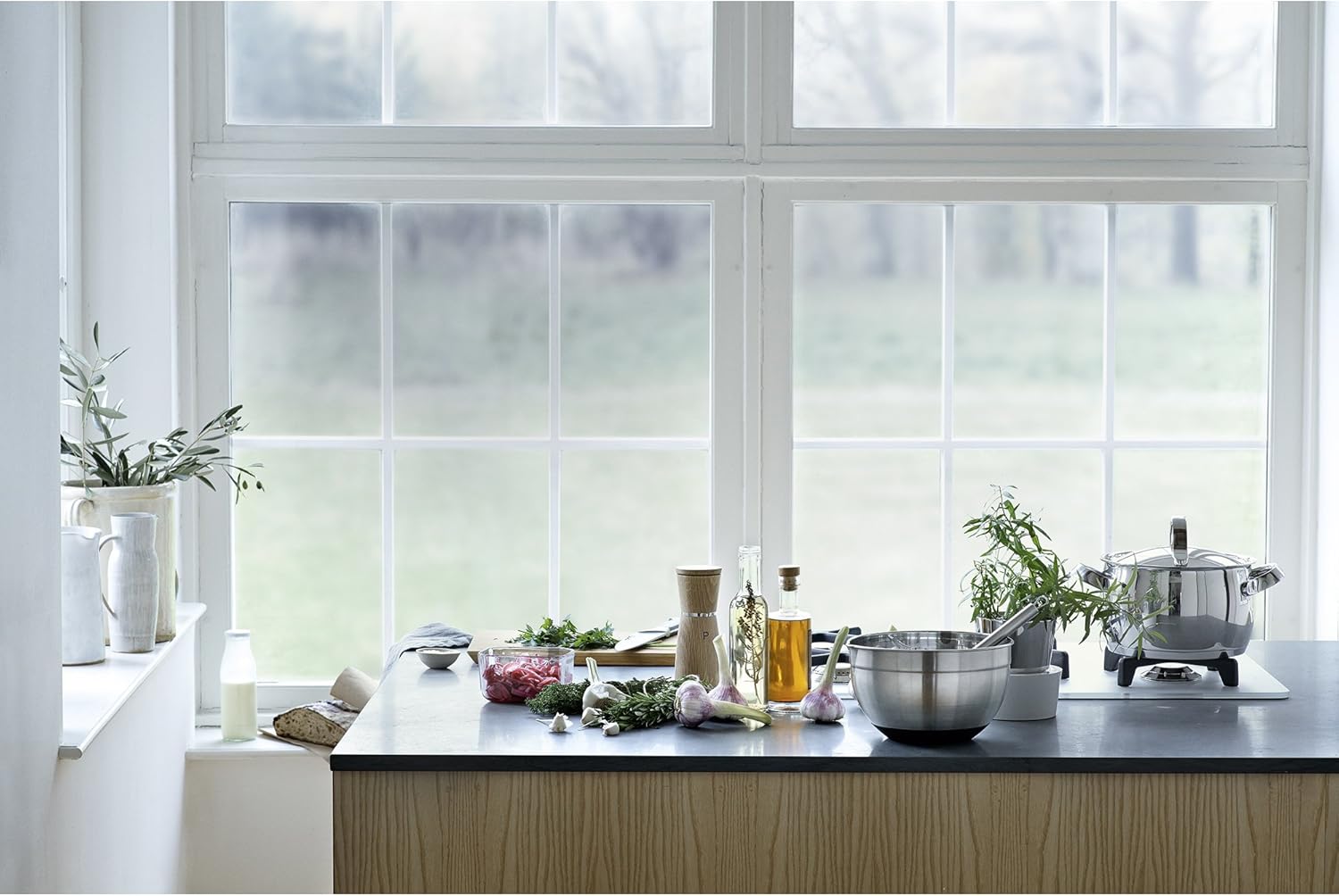 WMF Set 2-teilig Gourmet Schüsselset 4-teilig, Edelstahl Schüsseln für die Küche 0,75l - 2,75l, stapelbar und Kult X Edition Zerkleinerer elektrisch mit Glasbehälter, Blitzhacker 320 W Schüsselset und Zerkleinerer لینک آمازون : https://www.amazon.de/dp/B0DWXNYQ3N?th=1&psc=1 محتویات: ۱ کاسه ۱۶ سانتیمتری (۱.۰ لیتر)، ۱ کاسه ۱۸ سانتیمتری (۱.۵ لیتر)، ۱ کاسه ۲۲ سانتیمتری (۲.۵ لیتر)، ۱ کاسه ۲۴ سانتیمتری (۳.۵ لیتر)؛ ۱ خردکن (۱۶ × ۱۸ × ۲۲.۵ سانتیمتر، ۳۲۰ وات، طول کابل ۱ متر)، ۱ ظرف خردکن ۱ لیتری جنس کاسه: استیل ضد زنگ Cromargan® 18/10، براق، قابل شستشو در ماشین ظرفشویی، تمیز کردن آسان، بیمزه و مقاوم در برابر اسید؛ جنس خردکن: استیل ضد زنگ Cromargan®، شیشه کاسهها دارای پایهای از جنس استیل ضد زنگ مسطح برای پایداری هستند. لبهی مخصوص ریختن، ریختن مایعات را تسهیل میکند و نگه داشتن کاسه را هنگام هم زدن آسانتر میکند. کاسههای فولادی ضد زنگ حبابدار در برابر حرارت مقاوم هستند، بنابراین میتوانند به عنوان کاسههای بن ماری نیز استفاده شوند. به دلیل قابلیت روی هم قرار گرفتن (10 در 24 سانتیمتر)، میتوان آنها را به شیوهای صرفهجویی در فضا نگهداری کرد. چند منظوره: ایدهآل به عنوان کاسه مخلوطکن برای پخت و پز - به عنوان کاسه سالاد برای تهیه/سرو سالاد - به عنوان کاسه سرو برای خامه، تنقلات، چیپس و سایر خوراکیها انواع مواد غذایی (میوهها، سبزیجات، گیاهان دارویی، آجیل) را خرد، برش و مخلوط میکند. کار با یک دست راحت است. دو تنظیم سرعت (سطح ۱: برای خرد کردن و چرخ کردن غذاهای نرم، سطح ۲: برای خرد کردن غذاهای سفتتر یا برای خرد کردن بسیار ریز)