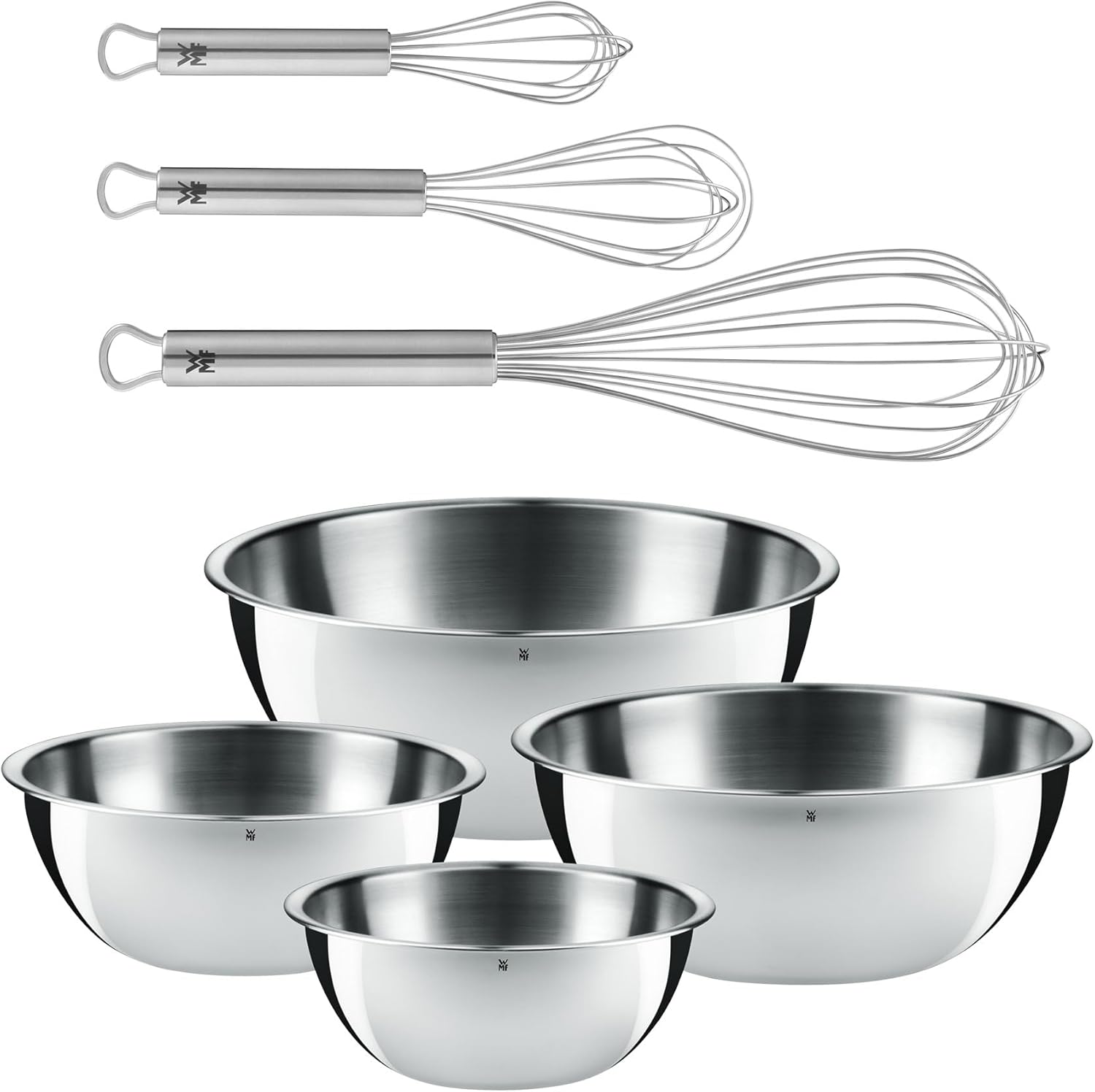 WMF Set 2-teilig Gourmet Schüsselset 4-teilig, Edelstahl Schüsseln für die Küche 0,75l - 2,75l Rührschüsseln und Profi Plus Schneebesen Set 3-teilig, Schneebesen Edelstahl teilmattiert, Rührbesen Schüsselset und Schneebesenset | قیمت یورویی 66.98€