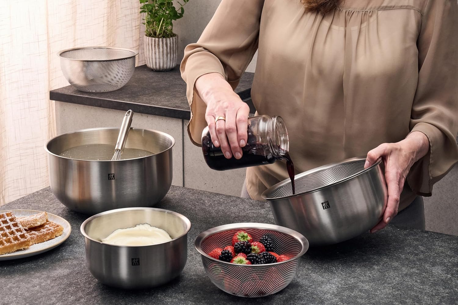 ست سهتایی کاسههای استیل زولینگ آلمان مدل ZWILLING Prep با طراحی ساده و کاربردی، مناسب برای آمادهسازی مواد غذایی، مخلوط کردن و سرو غذا است. این کاسهها با قابلیت قرارگیری در یکدیگر، فضای کمی را اشغال میکنند و برای استفاده روزمره در آشپزخانه ایدهآل هستند.