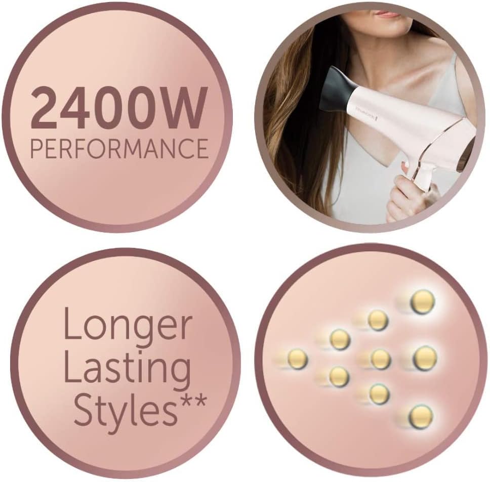 Leistungsstarker und langlebiger 2400 Watt AC Haartrockner für Ergebnisse wie beim Friseur OPTIheat-Technologie für lang anhaltende Styling-Ergebnisse Anti Frizz durch Ionen Technologie: Ionen-Generator produziert 90 % mehr Ionen (Im Vergleich zu Standard REMINGTON Haartrocknern). Reduziert die statische Aufladung, lässt das Haar schneller trocknen und sorgt für unvergleichbaren Glanz Drei Heiz- und zwei separate Gebläsestufen, echte Kaltstufe, 150 km/h Luftstrom, Style-Taste: Liefert zusätzliche Hitze für lang anhaltende Styling-Ergebnisse und mehr Volumen PROluxe Stylingdüse für optimierte Hitzeverteilung, 7 mm Stylingdüse für präzises Styling, Diffusor für extra Fülle und Volumen | قیمت یورویی : 29.99€