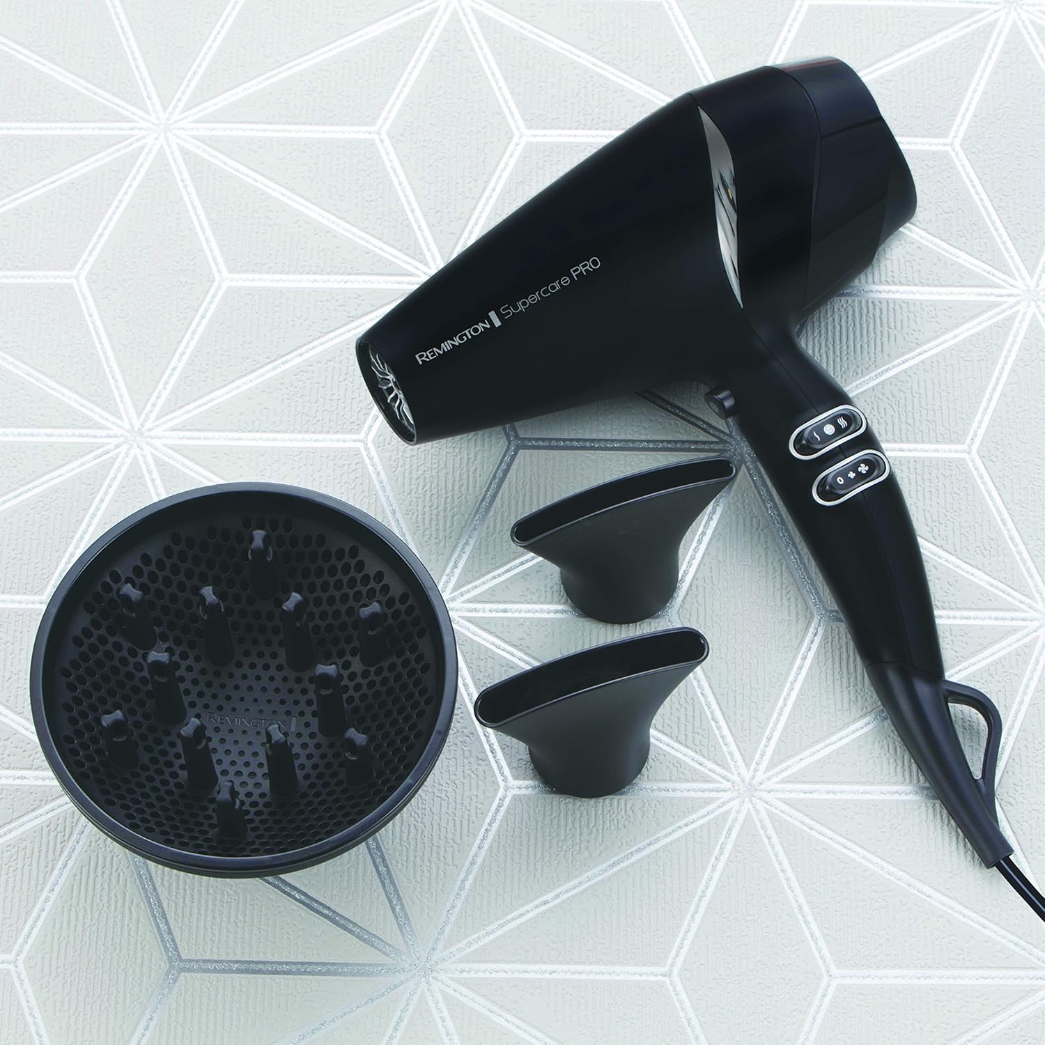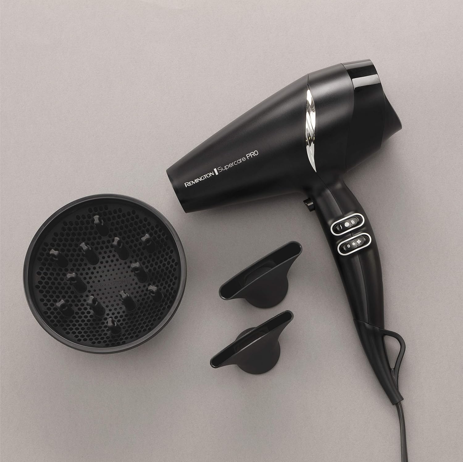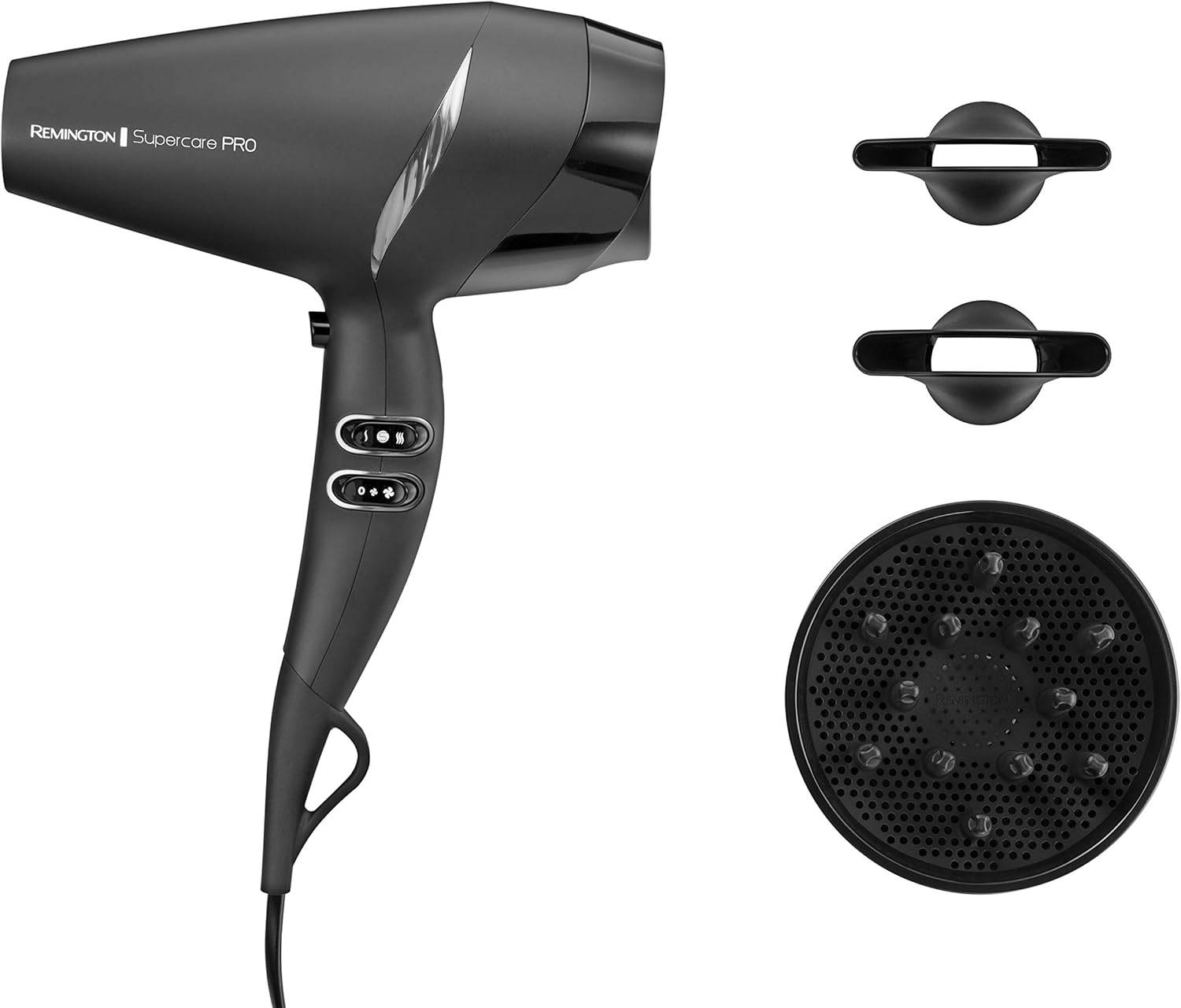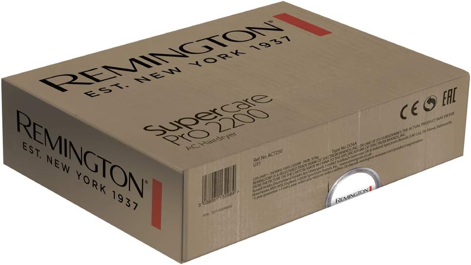 Remington Haartrockner Profi Ionen [leistungsstark & seitliche Profi-Bedienung] SupercarePro Technologie (2200W, 130km/h, 3 Stylingaufsätze, langlebiger Friseur AC-Motor) AC7250 [Amazon Exklusiv] | قیمت یورویی 29.28€