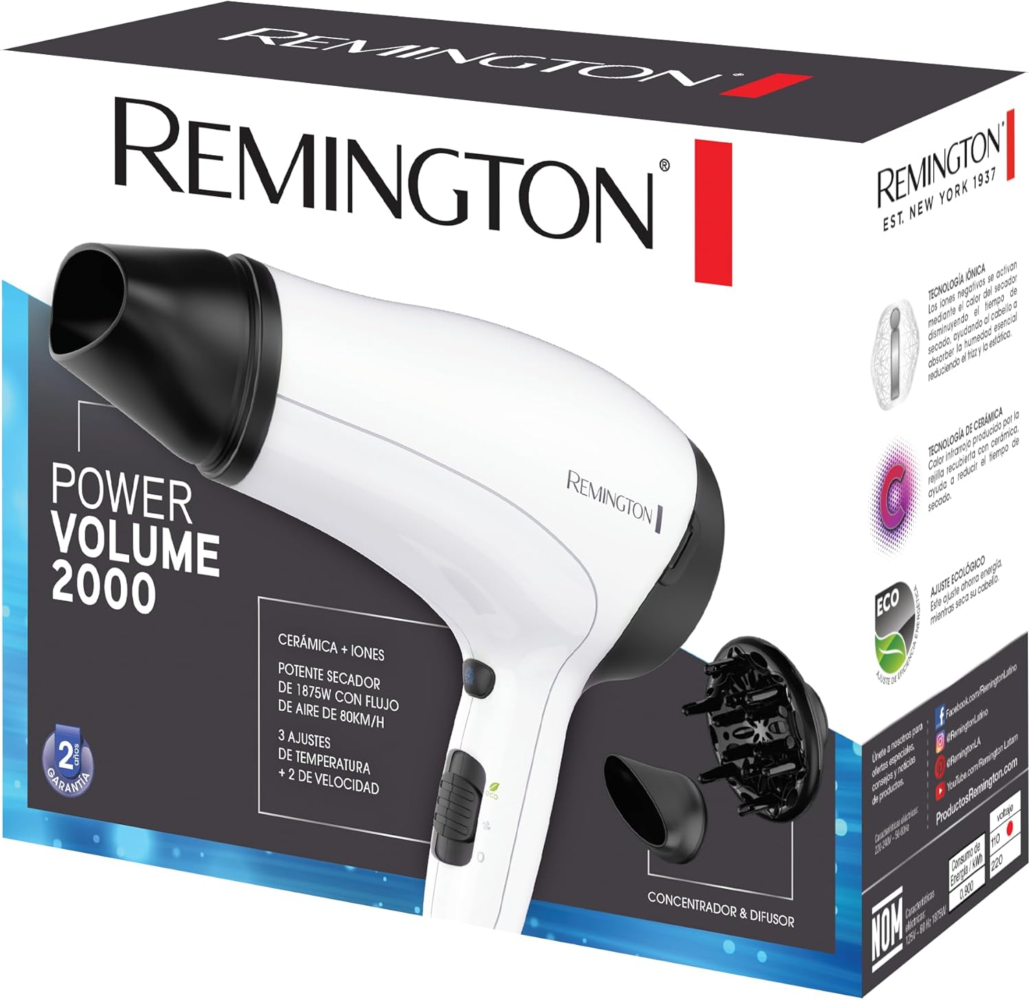 Remington Ionen-Haartrockner [leicht & kompakt] Power Volume (2000 W, kompaktes Design, Stylingdüse & Diffusor, 3 Heiz- & 2 separate Gebläsestufen, Abkühlstufe, Eco-Einstellung) D3015 Single | قیمت یورویی 23.99€
