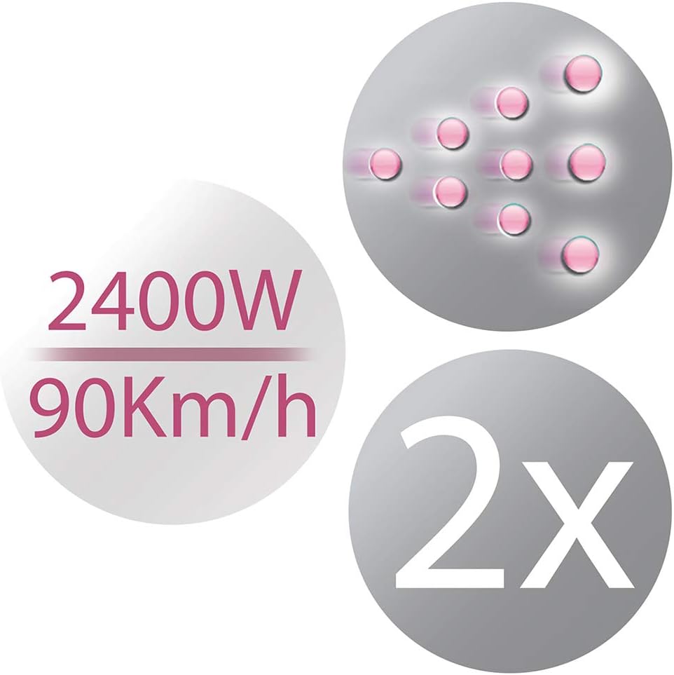 2400 Watt, 2 x langlebiger Motor (im Vergleich zu einem Standard Remington Haartrockner mit DC Motor), Ionen LED-Anzeige Ionen-Generator produziert 90 % mehr Ionen**: Reduziert die statische Aufladung, lässt das Haar schneller trocknen und sorgt für unvergleichbaren Glanz 3 Heiz- und 2 separate Gebläsestufen, 90 km/h Luftstrom, Turbofunktion für ein schnelles Trocknen der Haare Abkühlstufe zum Fixieren des Stylings, schmale Stylingdüse für ein präzises Styling Diffusor für extra Fülle und Volumen, abnehmbarer, leicht zu reinigender Luftfilter, Aufhängeöse | قیمت یورویی : 25.49€