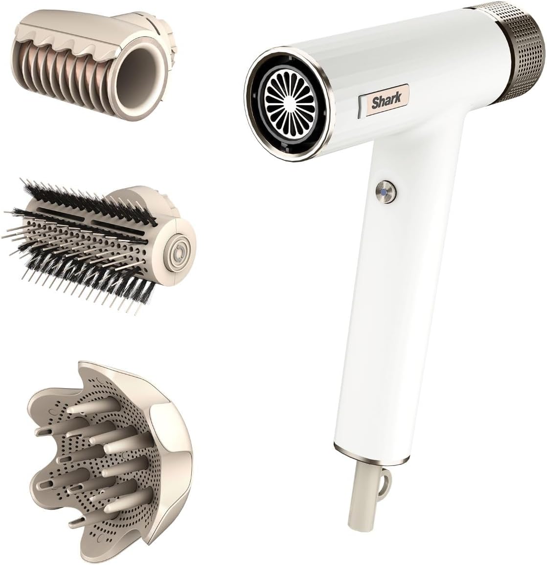 Shark SpeedStyle Haartrockner & RapidGloss Finisher für lockiges & krauses Haar, 3 Styler, Schnelltrocknend, Glättet Fliegende Haare, Für Alle Haartypen, Keine Hitzeschäden, Ionisch, Seide, HD334EU
