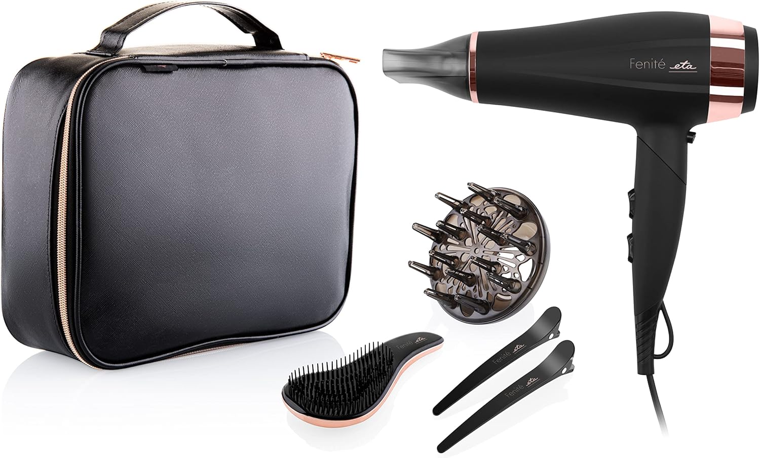 ETA Haartrockner Fenite I Black Edition I Klappbar I 2200 W I Ion-Funktion I Kaltstufe I Sehr leicht I Diffusor I Reisetasche I 3 Temperatureinstellungen I 2 Geschwindigkeiten I Reisehaartrockner