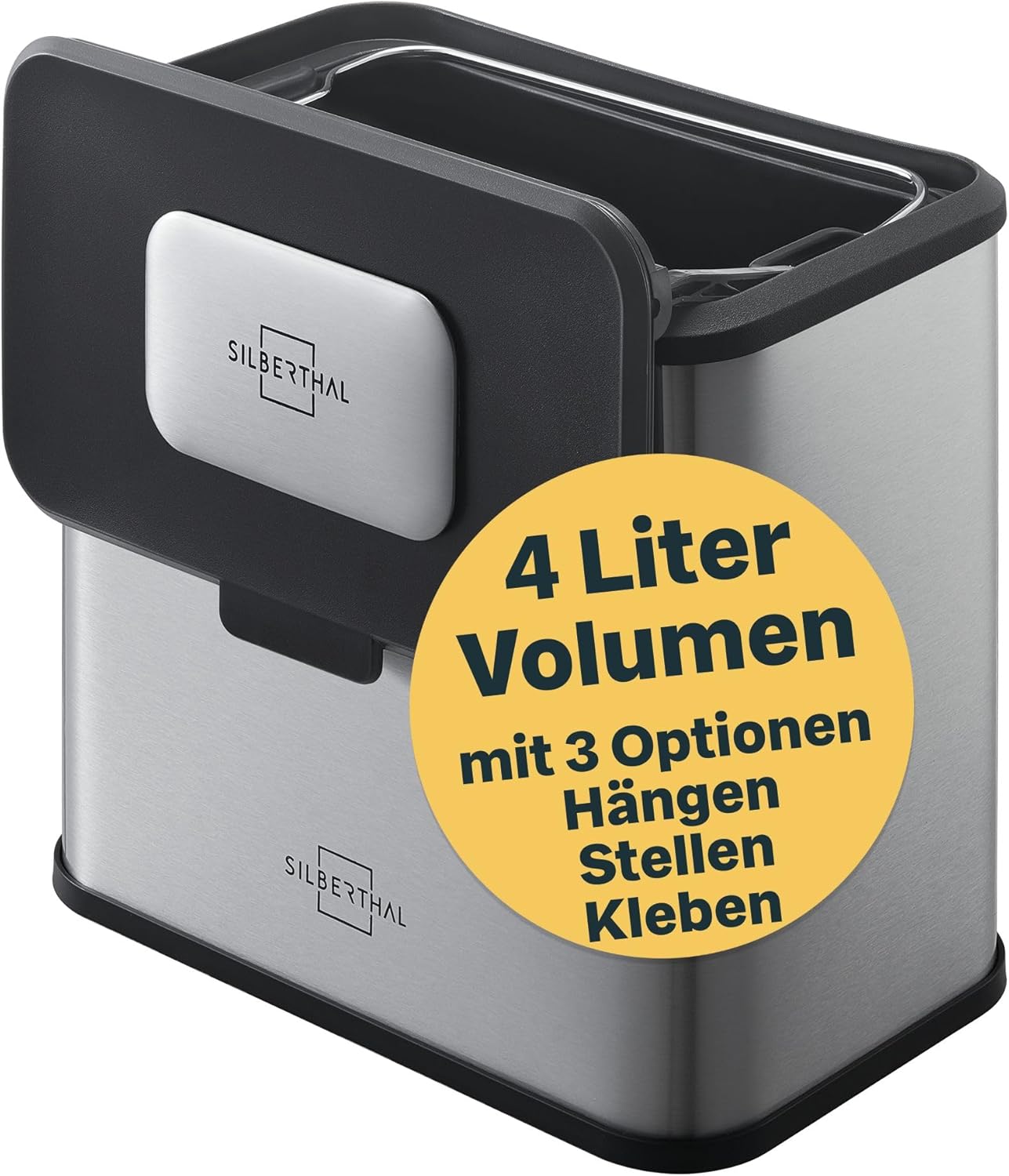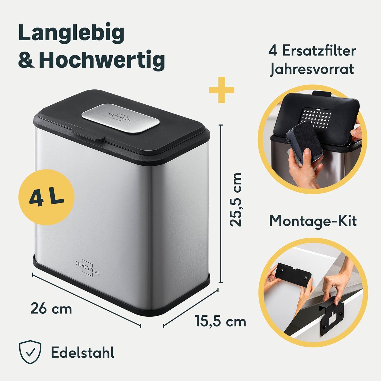 SILBERTHAL Biomülleimer Küche 4L – Edelstahl – Mit Deckel – Geruchsarmer Komposteimer für die Küche – Mit Aktivkohlefilter – Innenbehälter spülmaschinenfest Biomülleimer 4 Liter | قیمت یورویی 36.95€