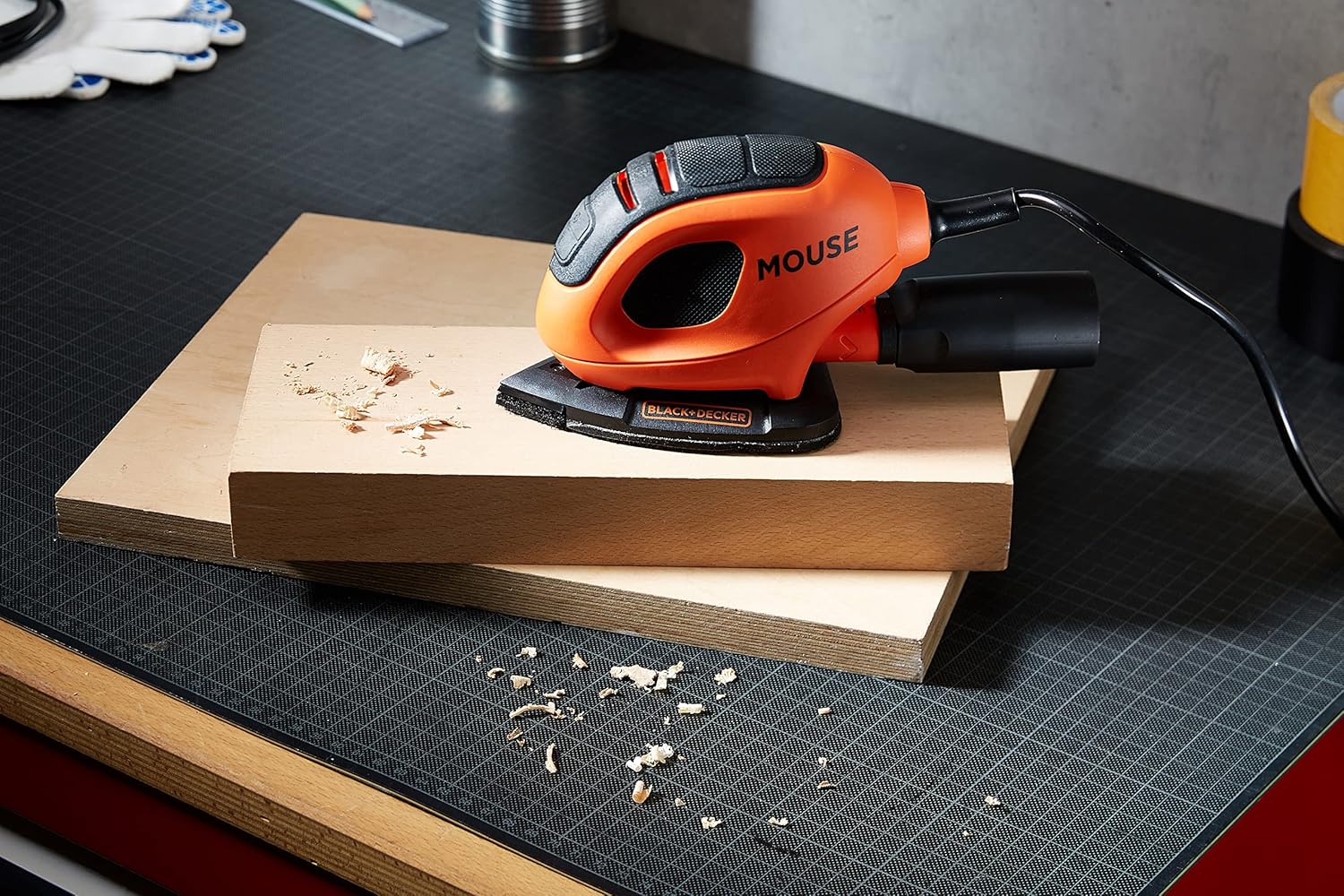 Black+Decker Dreieckschleifer Mouse (55 Watt, 133 x 95 mm, mit Staubsaugeradapter, zum Schleifen/Polieren, Klettfix-System, inkl. 15-teiliges Schleifpapier-Set & Softtasche) BEW230BC, Schwarz/Orange | قیمت یورویی 35.99€