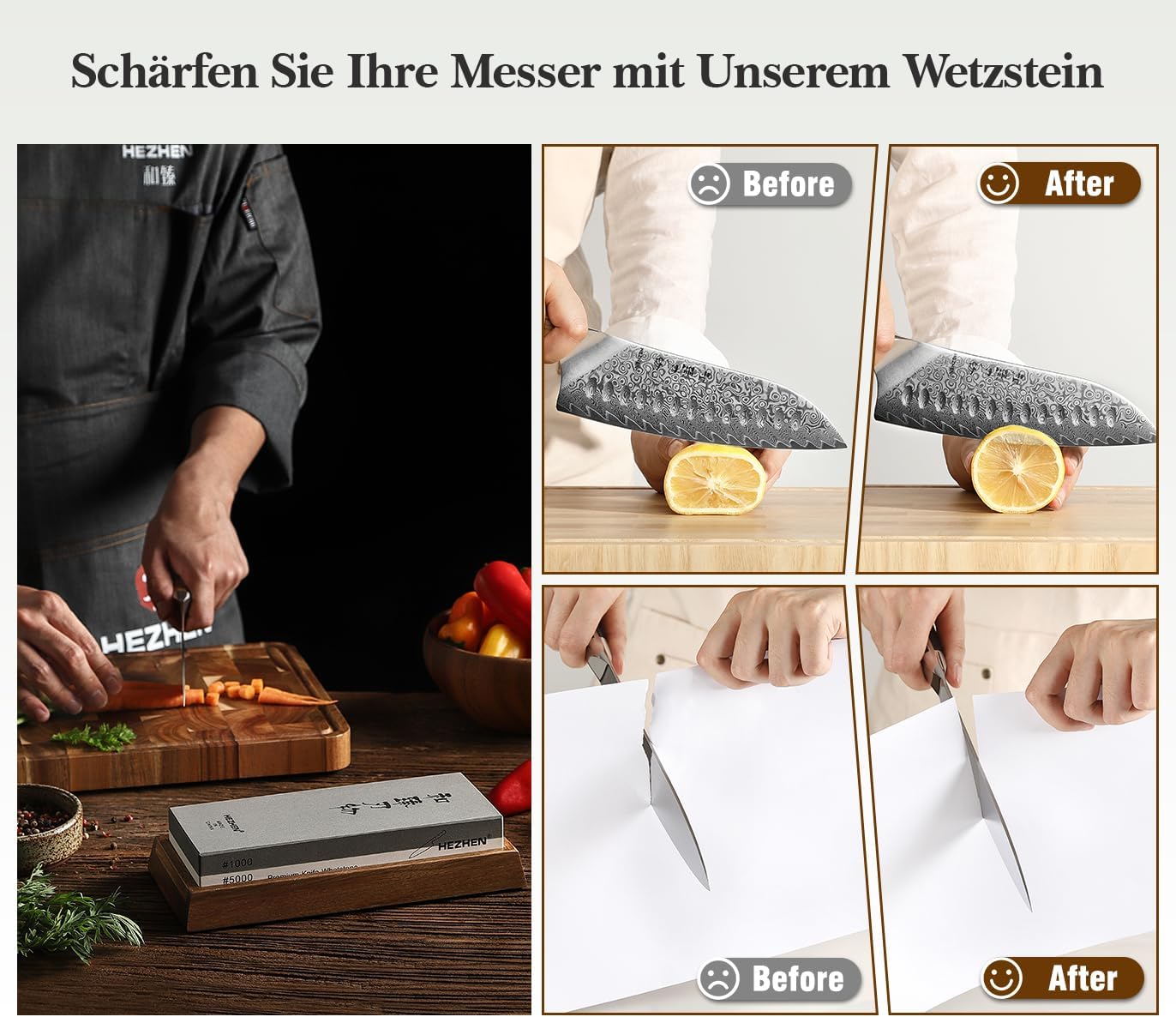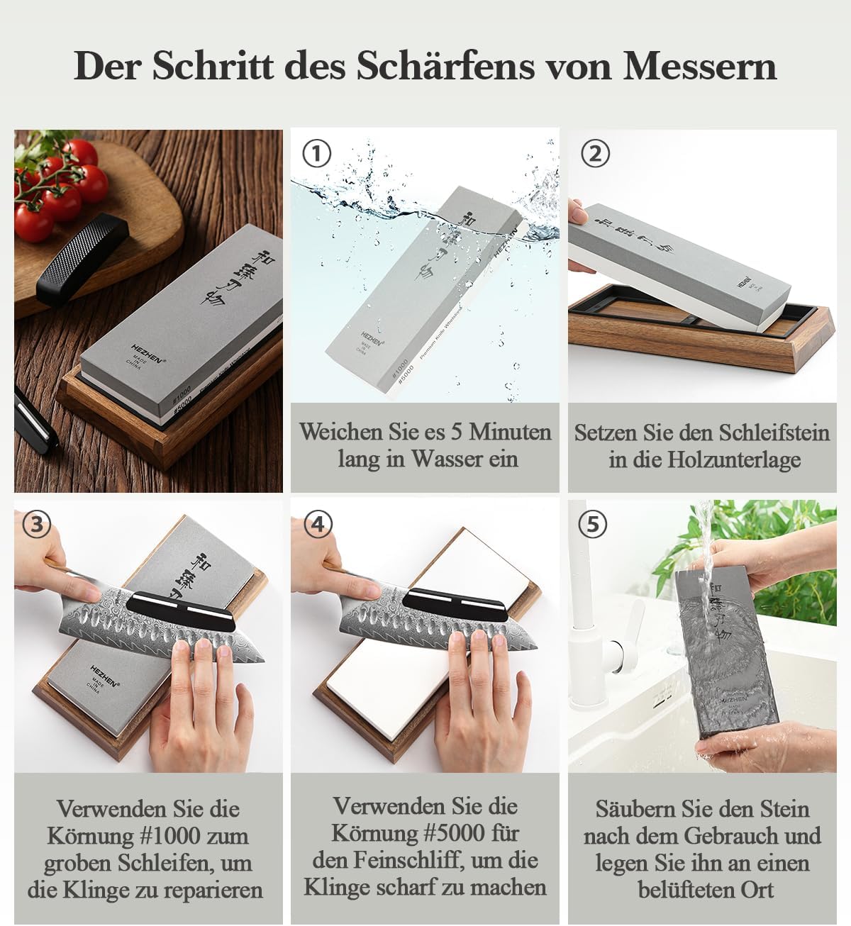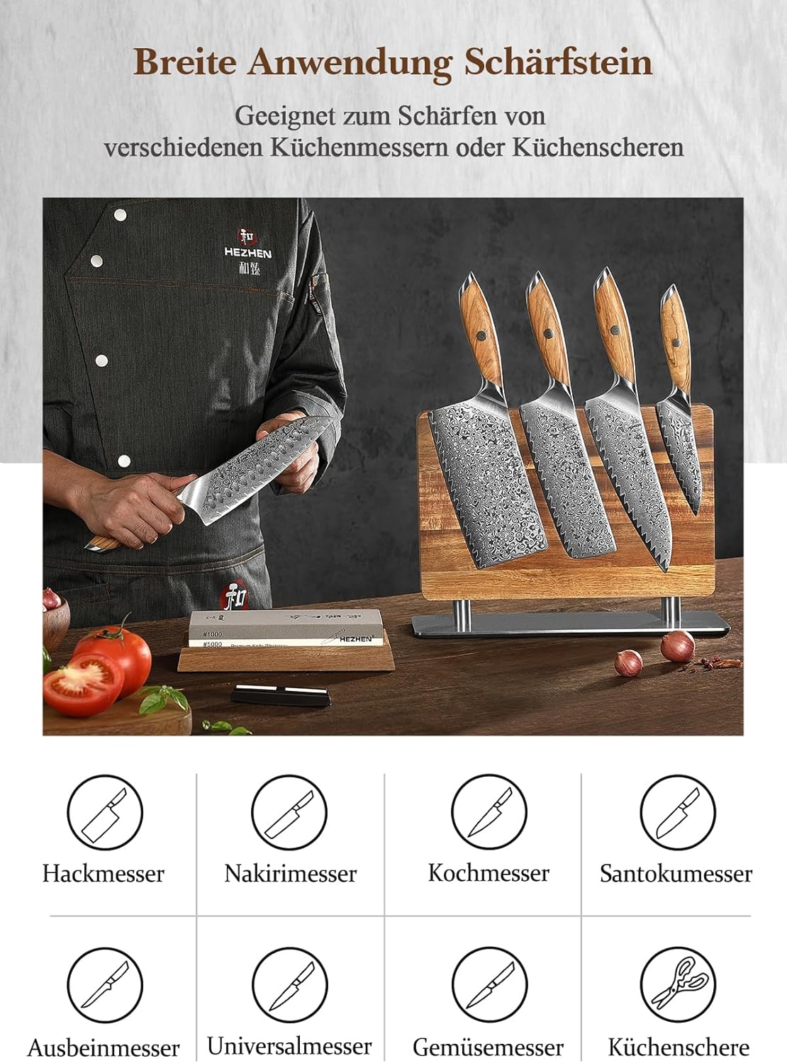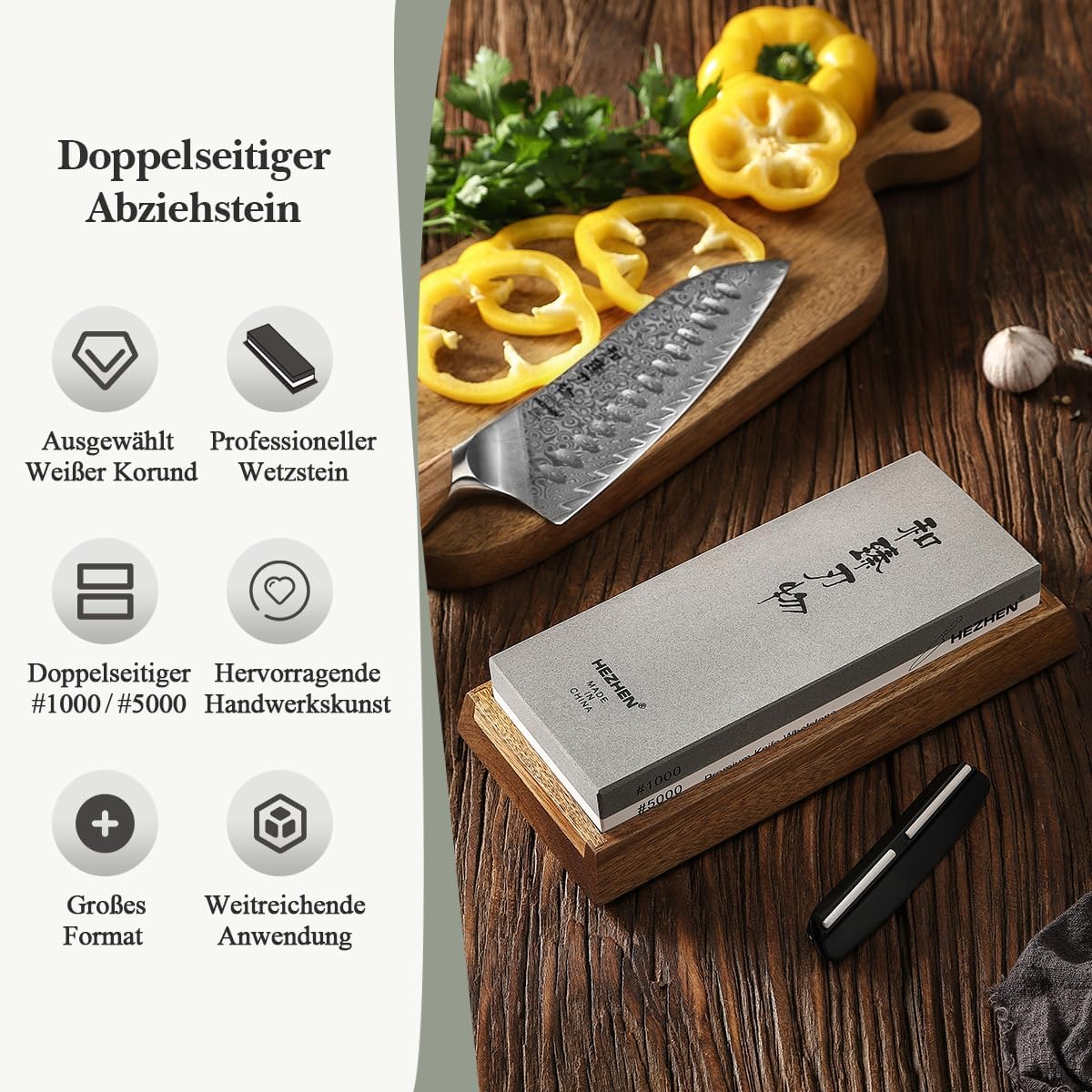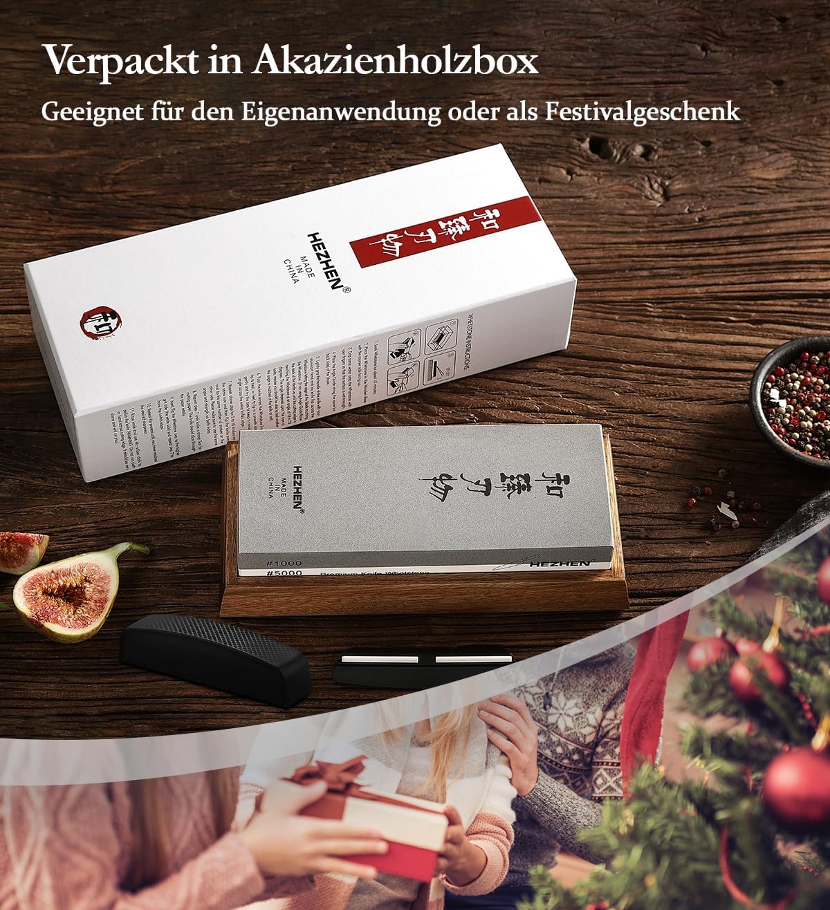 HEZHEN Doppelseitiger Abziehstein, Groß Weißkorund Schleifstein Wetzstein, Professionell Messerschärfer, Körnung1000/5000 mit Rutschfestem Akazienholz Basis, Abflachungsstein,Winkelführung #1000/5000 | قیمت یورویی 53.99€