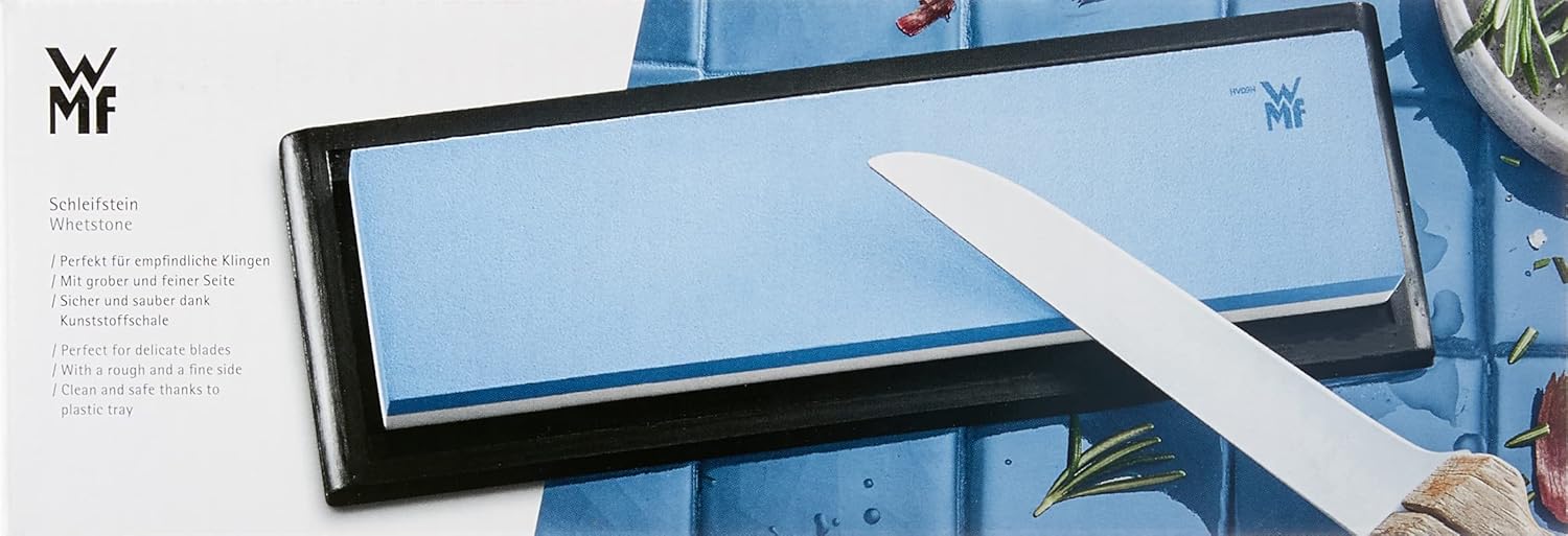 WMF Schleifstein Messer 5 x 20 x 2,5 cm, Messerschärfer, grobe und feine Körnung, Kunststoffschale, Messerschleifer ideal für Yamato und Damasteel Messer | قیمت یورویی 59.99€