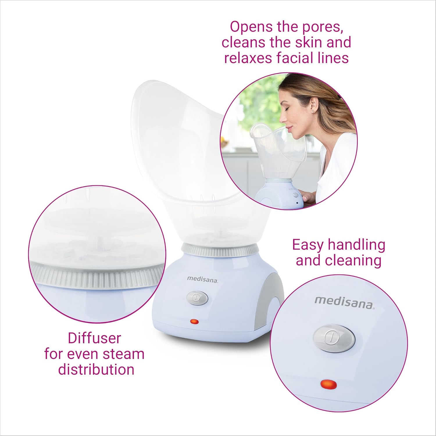 Medisana FSS Gesichtssauna, Gesichtsdampfer, porentiefe Gesichtsreinigung mit Nasenaufsatz für die Gesichtspflege 1. Generation | قیمت یورویی 20.38€