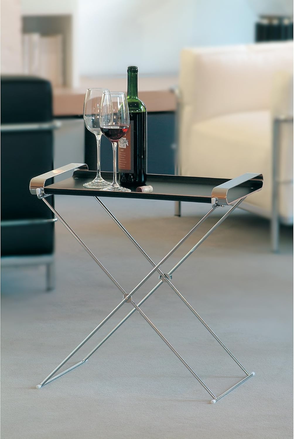 Inhalt: 1x Tablett mit Tragegriffen (54 x 32 cm) ohne Gestell - Artikelnummer: 0610206200 Material: Edle Materialkombination aus lackiertem Holz und Cromargan Edelstahl Mit seiner Fläche aus schwarz lackiertem Holz und den Tragegriffen aus poliertem Cromargan lässt sich das Tablett universell einsetzen Auf der geräumigen Standfläche transportieren Sie Gläser, Flaschen, Schüsseln und Teller sicher zum Tisch oder servieren darauf stilvoll Antipasti, Konfekt und Knabbereien Design: Metz & Kindler Produktdesign | قیمت یورویی : 100.57€