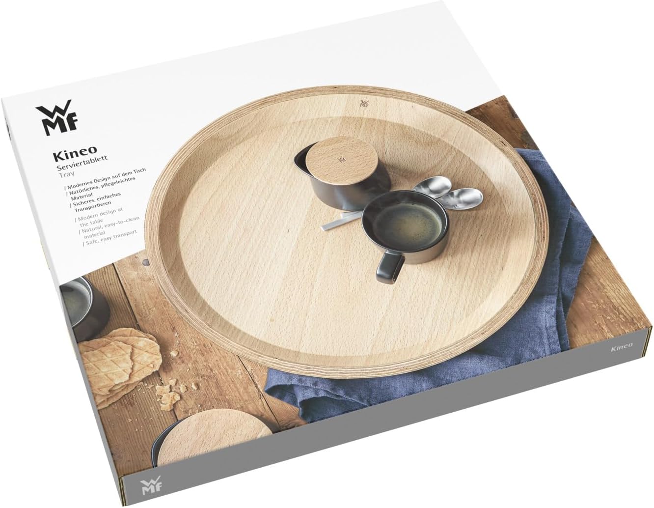 WMF Kineo Tablett 37,5 cm, Serviertablett rund, Dekotablett, Buchenholz, Servierplatte für Kaffee, Tee, Käse, Antipasti | قیمت یورویی 46.84€
