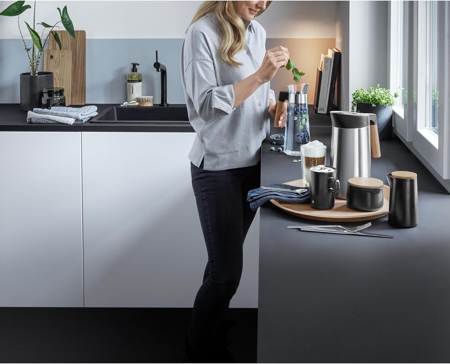 WMF Kineo Tablett 37,5 cm, Serviertablett rund, Dekotablett, Buchenholz, Servierplatte für Kaffee, Tee, Käse, Antipasti لینک آمازون : https://www.amazon.de/dp/B0CHYVKKT9?th=1&psc=1 محتویات: ۱ عدد سینی سرو چوبی (قطر ۳۷.۵ سانتیمتر، ارتفاع ۶ سانتیمتر) - شماره کالا: ۰۶۵۱۵۴۴۵۰۵ جنس: چوب راش. به لطف مواد باکیفیت از منابع پایدار، این سینی فضایی دنج و گرم ایجاد میکند و مکمل سبک اسکاندیناوی است. لبه برآمده سینی آشپزخانه امکان حمل ایمن نوشیدنیها و غذا را فراهم میکند. این سینی که از مواد طبیعی و با مراقبت آسان ساخته شده است، در صورت نیاز به راحتی با یک پارچه مرطوب قابل تمیز کردن است. با توجه به طراحی و شکل آن، این سینی میتواند به عنوان سینی تزئینی (سینی شمع) یا برای سرو پنیر و کاسههای پیشغذا نیز استفاده شود.